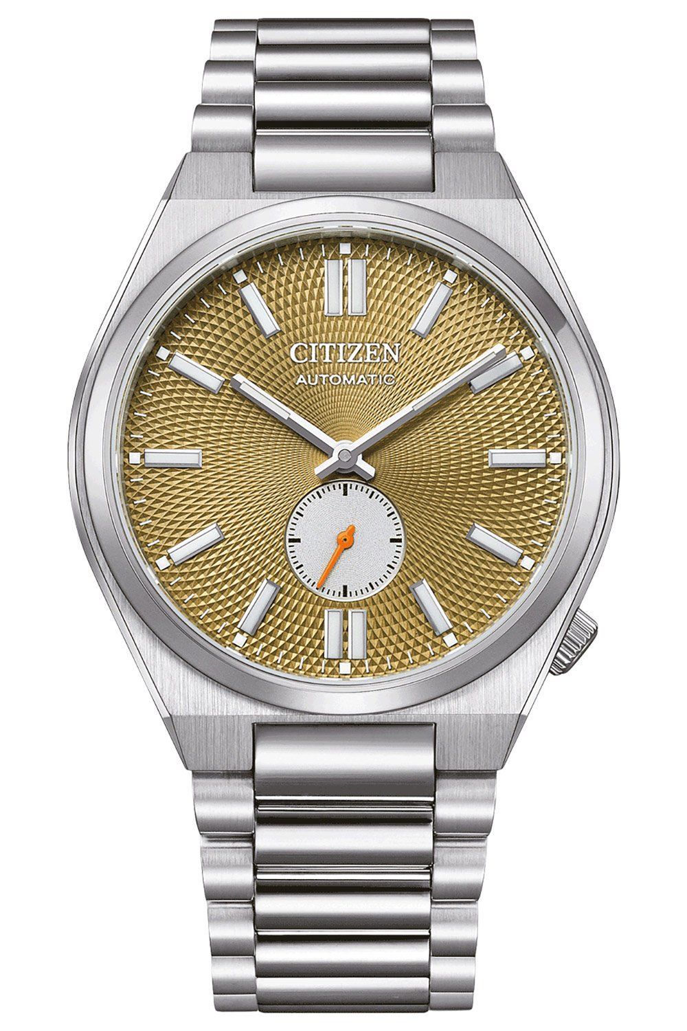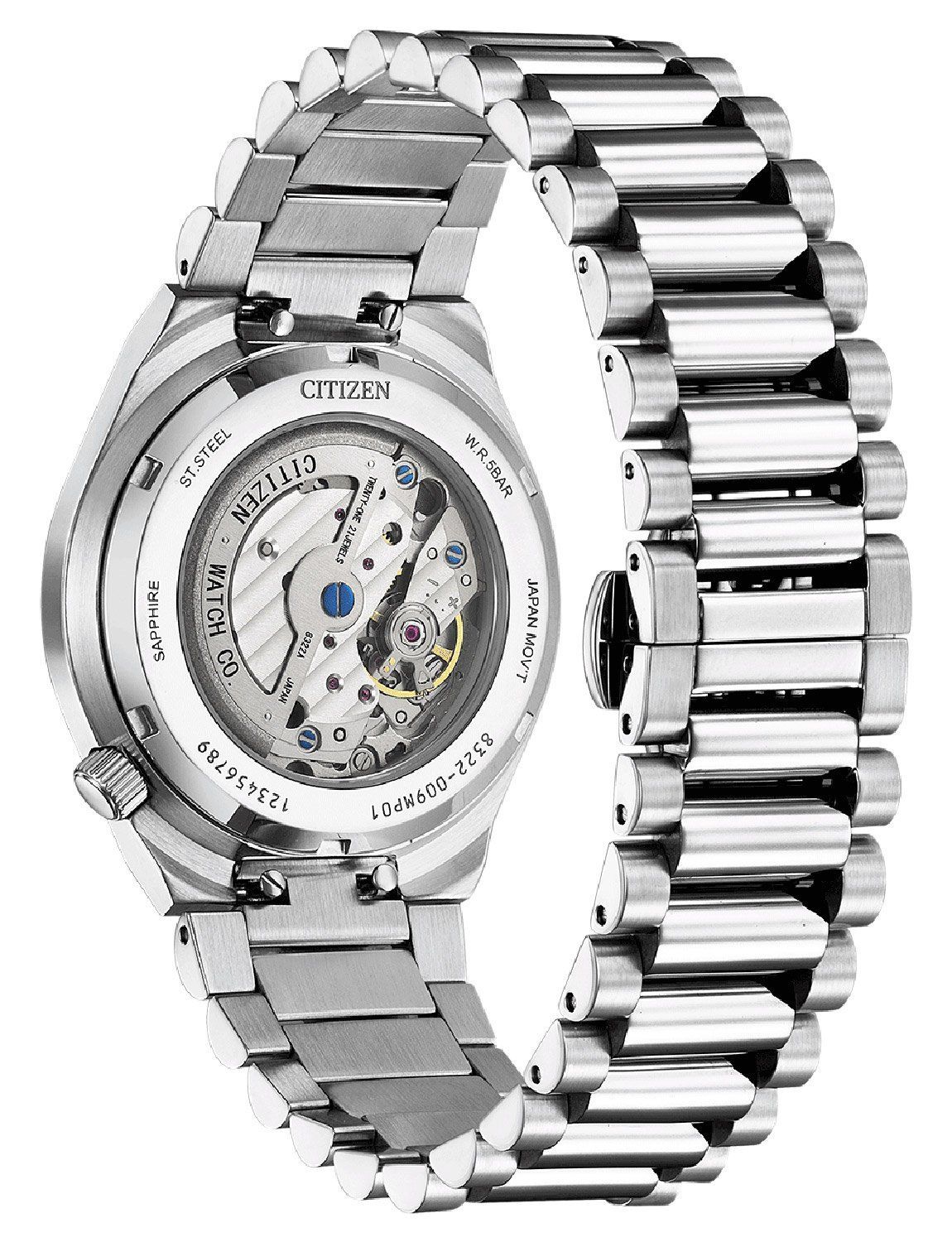 schicke Uhr für Männer, mechanisches Uhrwerk mit automatischem Aufzug, Kal. 8322, 60 Stunden Gangreserve, moosgrünes Zifferblatt mit feinem Muster, lumineszierende Zeiger und Indizes, kleine Sekundenanzeige, Gehäuse aus poliertem Edelstahl mit gebürsteter Oberfläche, verschraubter Glas-Gehäuseboden, geriffelte Krone, kratzfestes Saphirglas, poliertes Edelstahl-Armband, seitlich mattiert, Sicherheitsfaltschließe mit Logo, wasserdicht bis 5 bar, Breite 40 mm, Höhe 11,7 mm