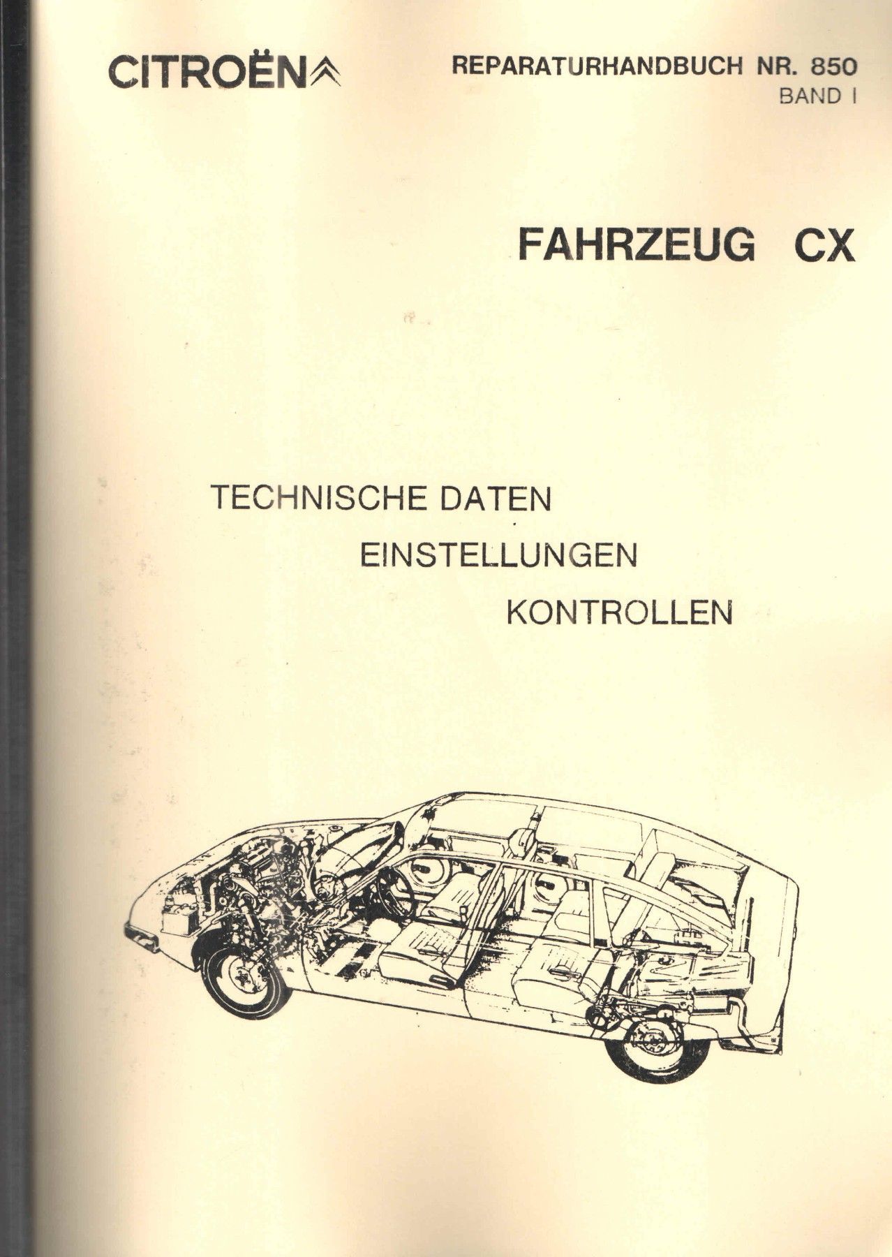 Citroen CX Reparaturanleitung NR 850 Band 1 Motor, Vergaser, Zündanlage, Kühlanlage, Kupplung, Drehmomentwandler, Getriebe und Getriebeschaltung, Technische Daten, Einstellungen, Kontrollen Kraftübertragung, Druchquellen und Druckreserve, Vorder und Hinterachse, Federung, Lenkung, Elektrische Anlage