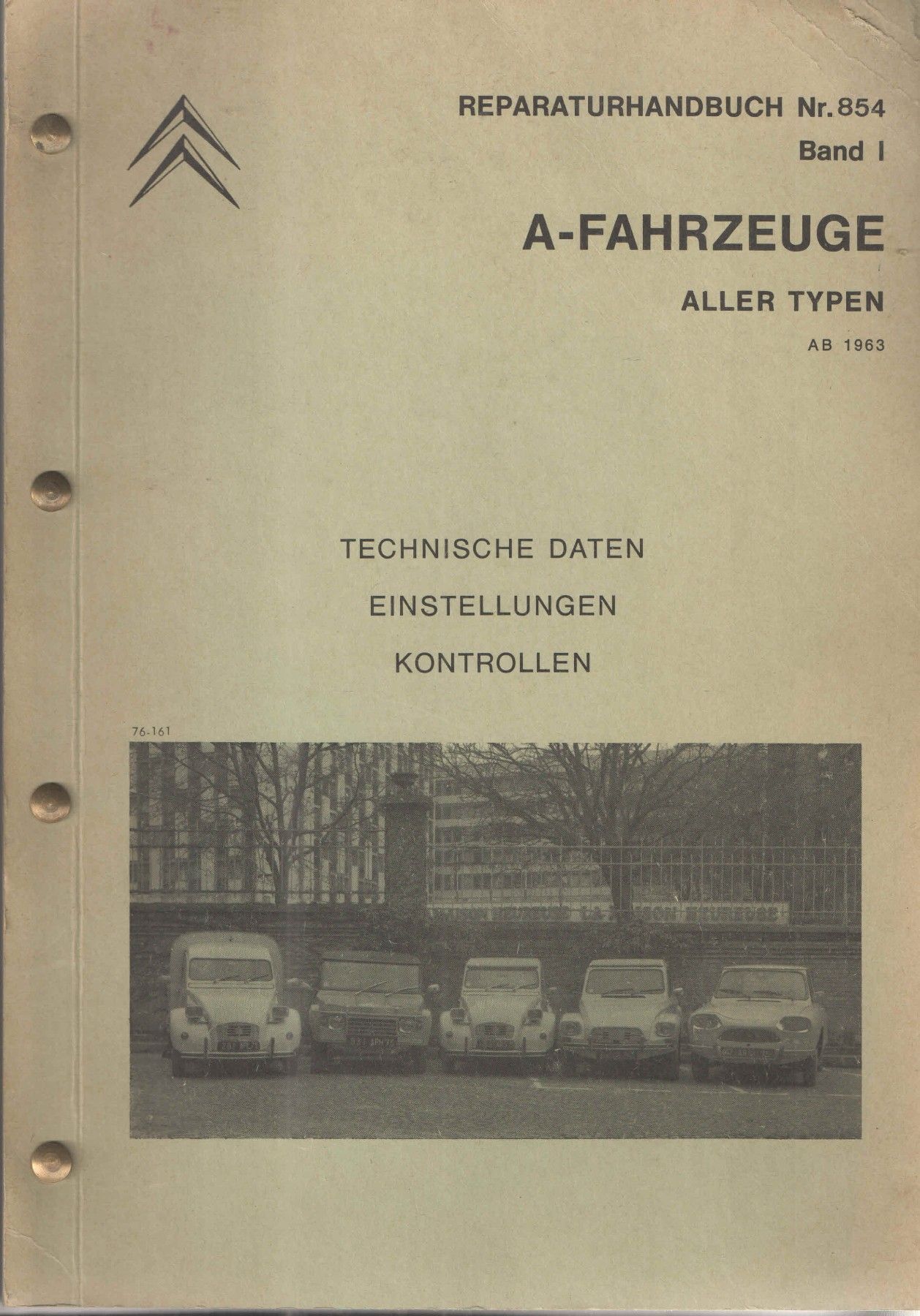 Citroen-Reparaturhandbuch-A-Fahrzeug aller Typen ab 1963 Band 1, Nr 854 Dieser Band ist für alle Werkstätten zu Instandsetzungs-oder Reparaturzwecken bestimmt Motor, Vergaser, Zündanlage, Kupplung, Getriebe, Kraftübertragung, Vorderachse, Hinterachse, Federung, Lenkung, Bremsen, Elektrische Anlage,