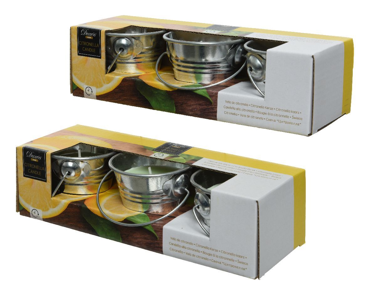 Citronella Kerze 6cm Outdoor Duftkerze im Metalleimer 3er Set
