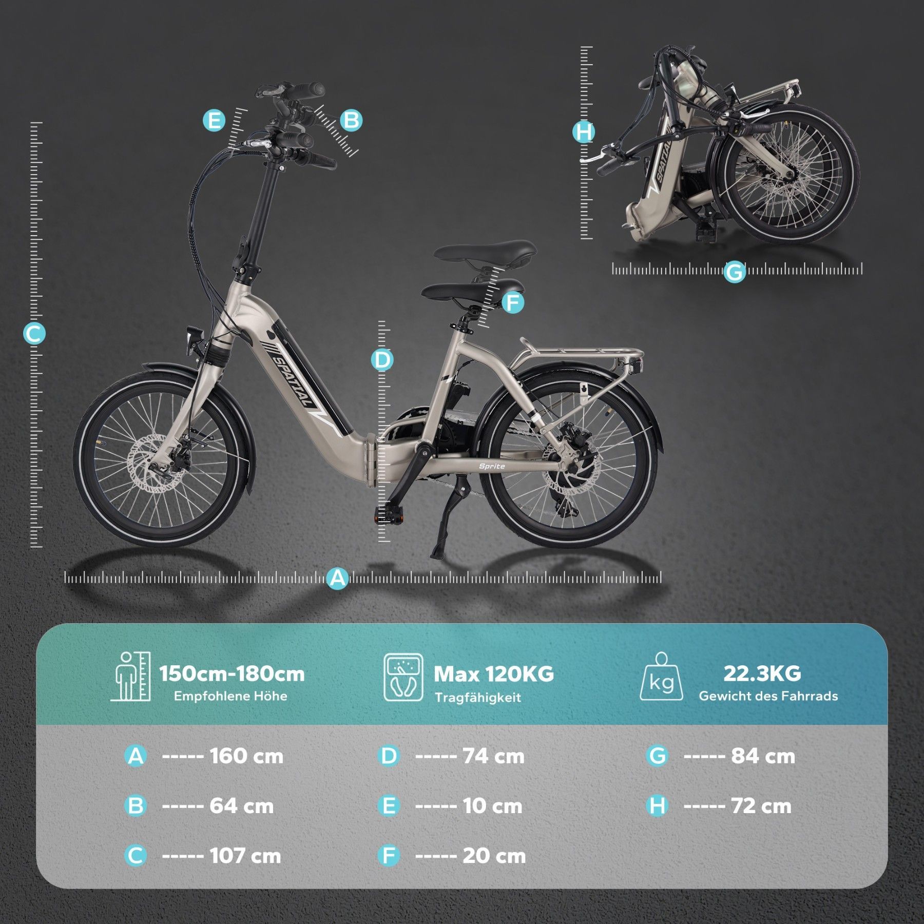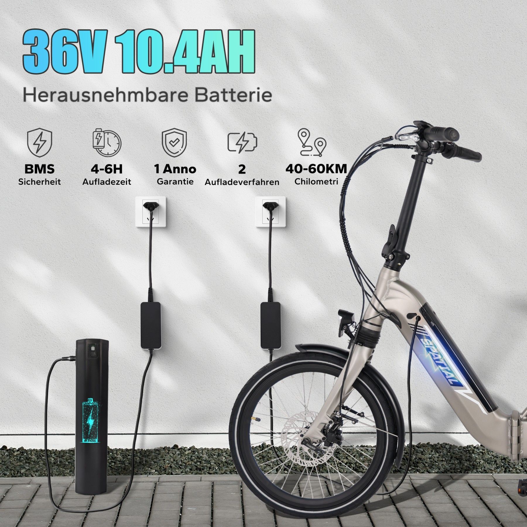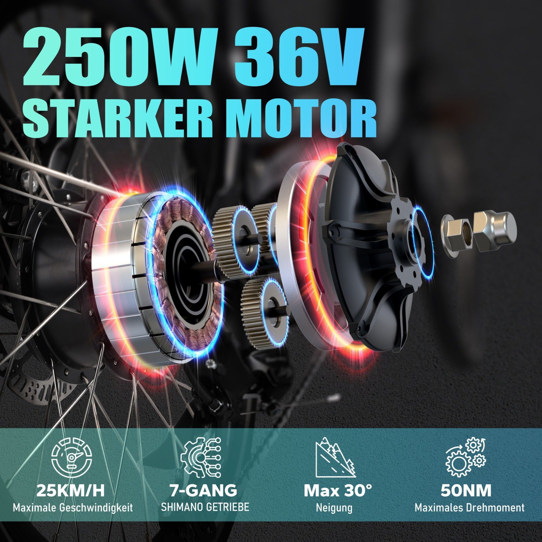City E Bike, Elektrofahrrad, 40NM 250W Motor 36V 374.4Wh Batterie, 7 Gang Schaltung