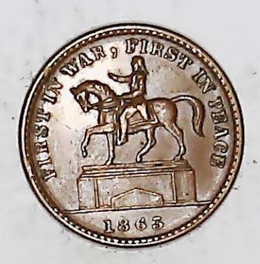 Originalmünze Land Epoche: USA Nominal: ohne Jahr: 1863 Motiv: First in War , First in Peace Union for ever Material: Bronze Gewicht: 3,38 Gramm Durchmesser: 19 mm Erhaltung: vz