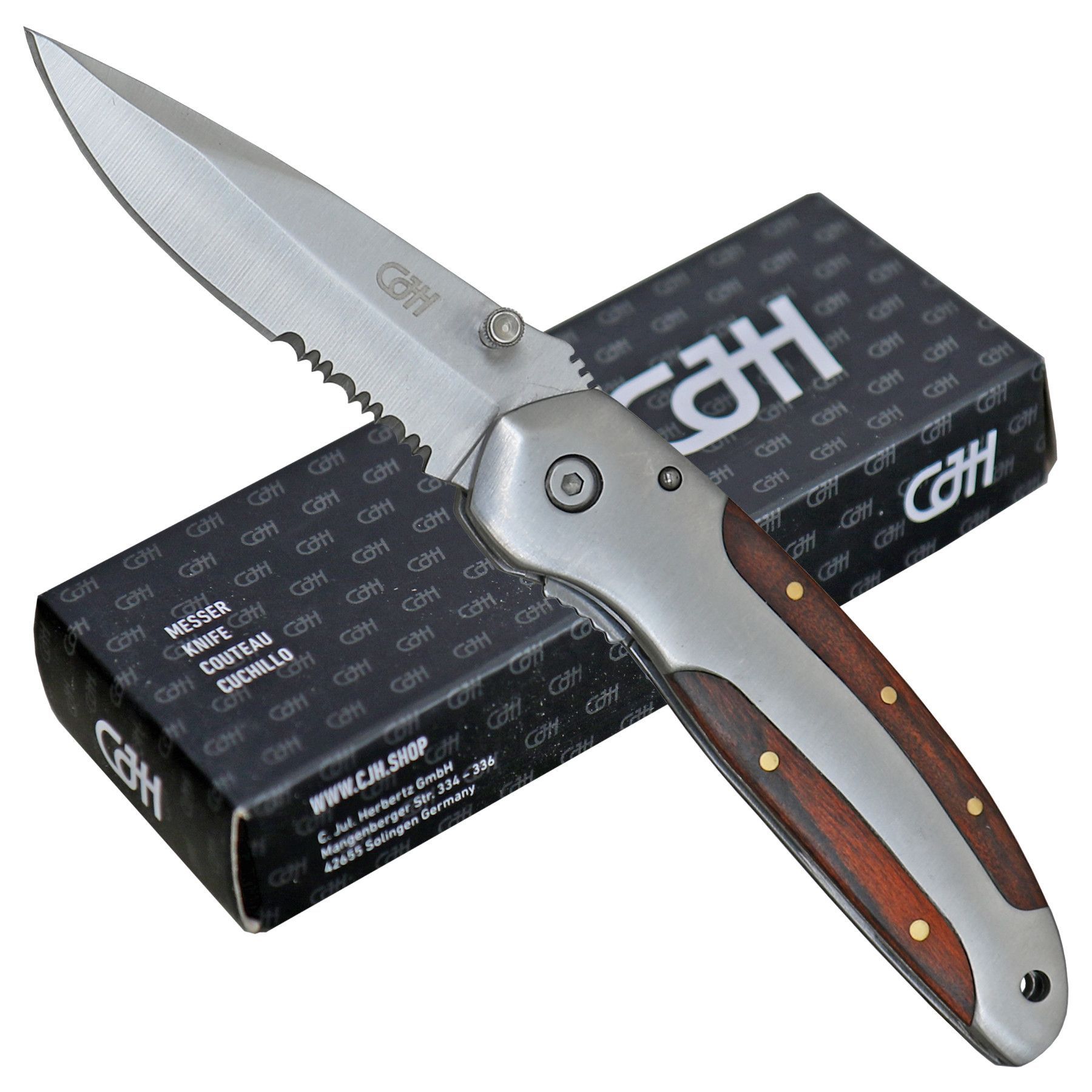 Herbertz CJH Einhandmesser Taschenmesser Edelstahl-Heft Pakkaholz Einlagen Clip