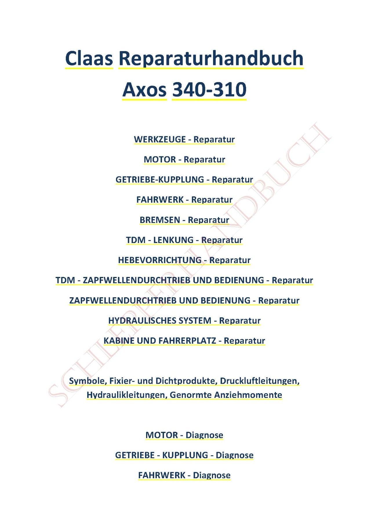 Claas Reparatur Handbuch Schlepper AXOS 310, 320, 330, 340