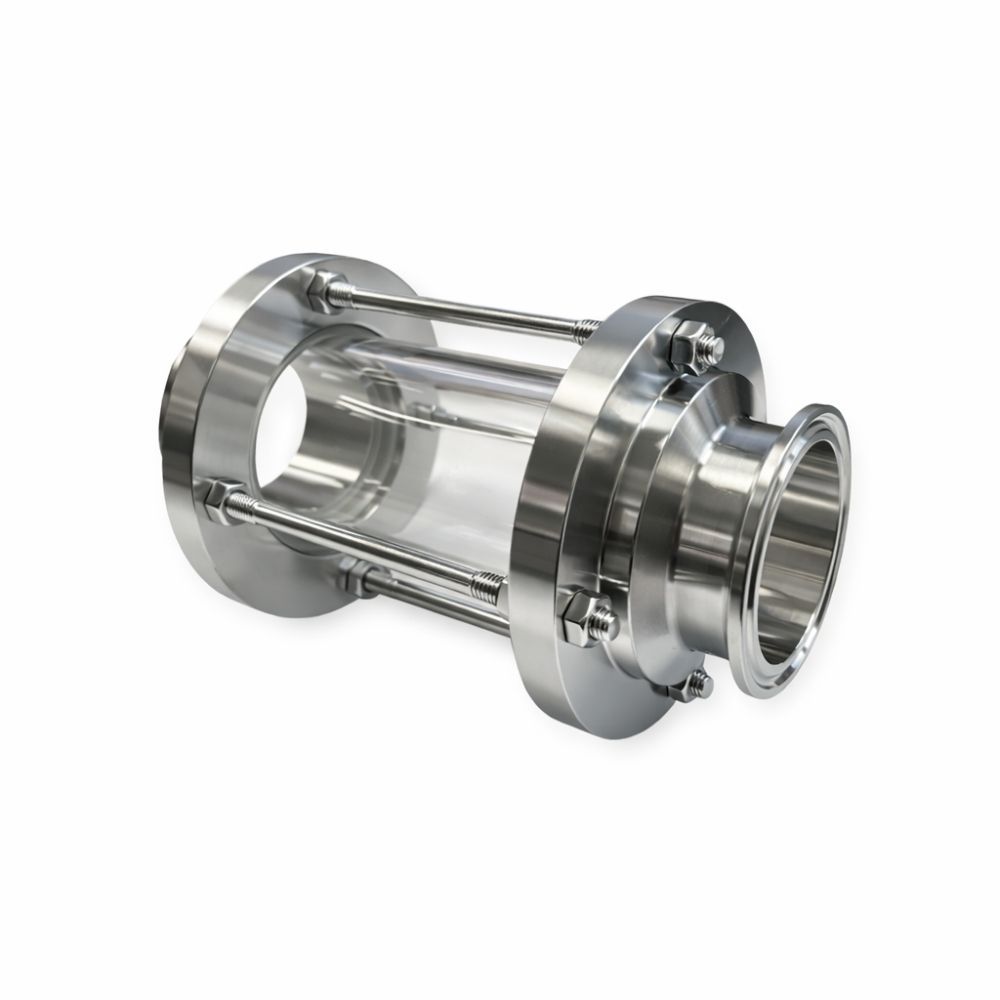 Clamp-Schauglas aus Borosilikatglas mit Schutzstäben - Edelstahl 1.4301, bis 16 barProduktbeschreibungDas Clamp-Schauglas aus Borosilikatglas mit Schutzstäben ermöglicht die sichere visuelle Kontrolle von Medienströmen in hygienischen Rohrleitungssystemen. Es eignet sich ideal für Prozesse, bei dene