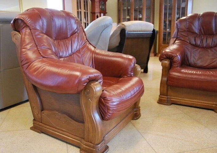 Classic 3-SITZER SOFA SET 3 + 2 + 1 Echtleder SESSEL Schlaffunktion ANTIK Rustikal