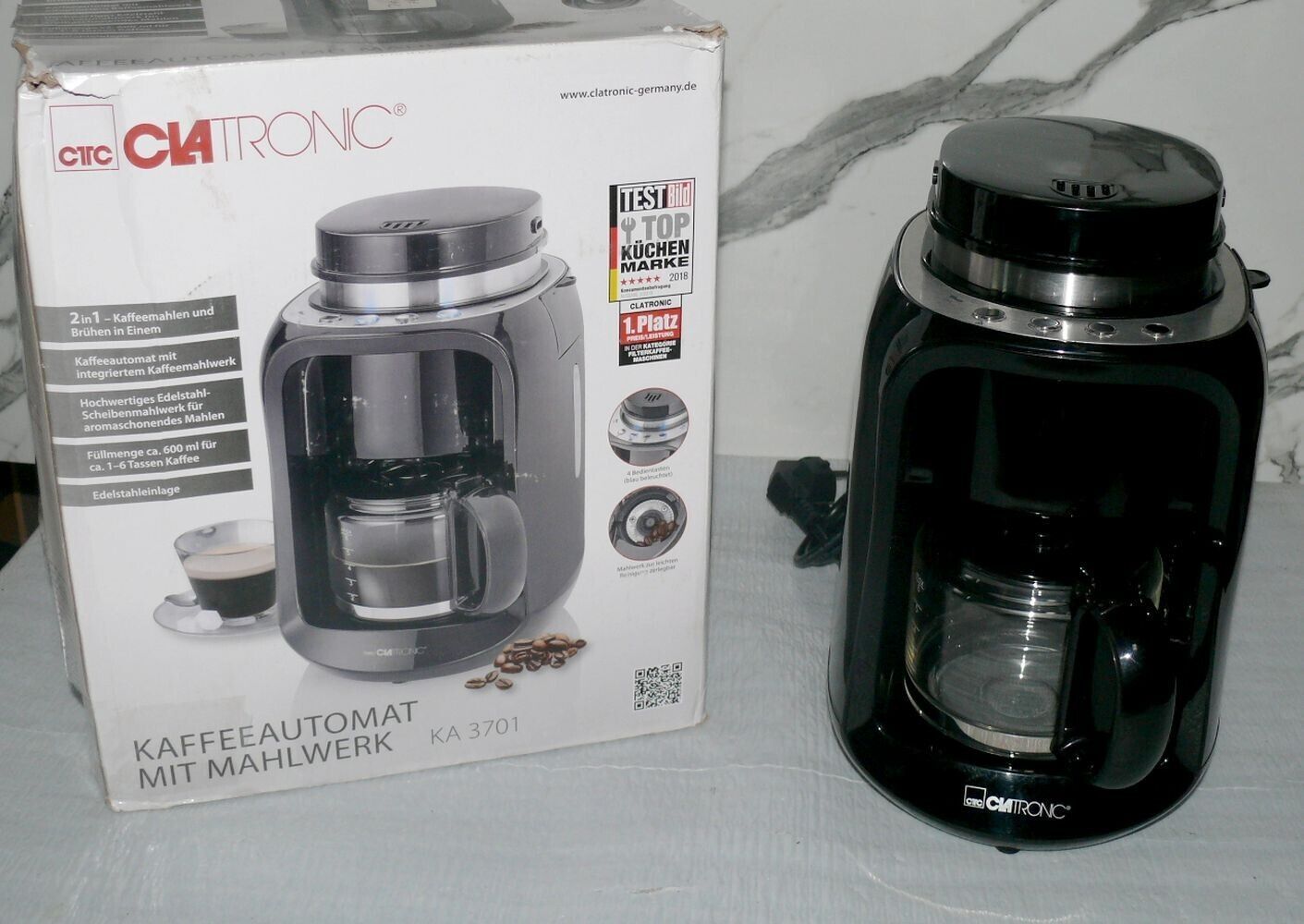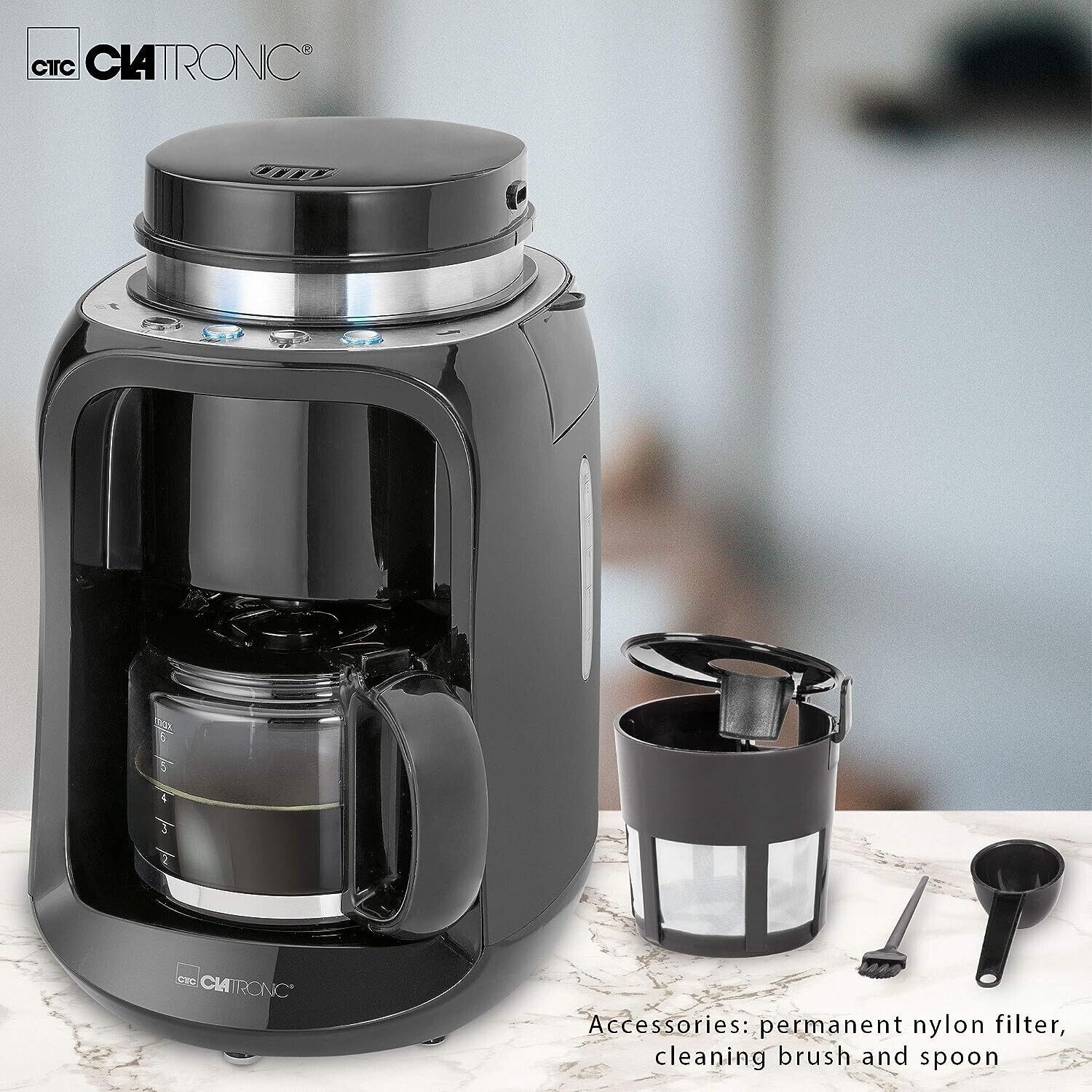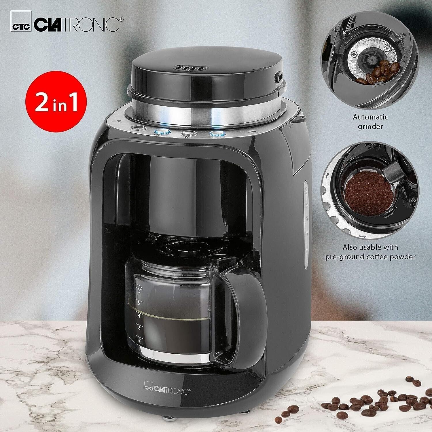 Clatronic Clatronic KA3701 Kaffeeautomat Mahlwerk 2in1 Bonnen & Brühen 600W LED 0,6l BLK
