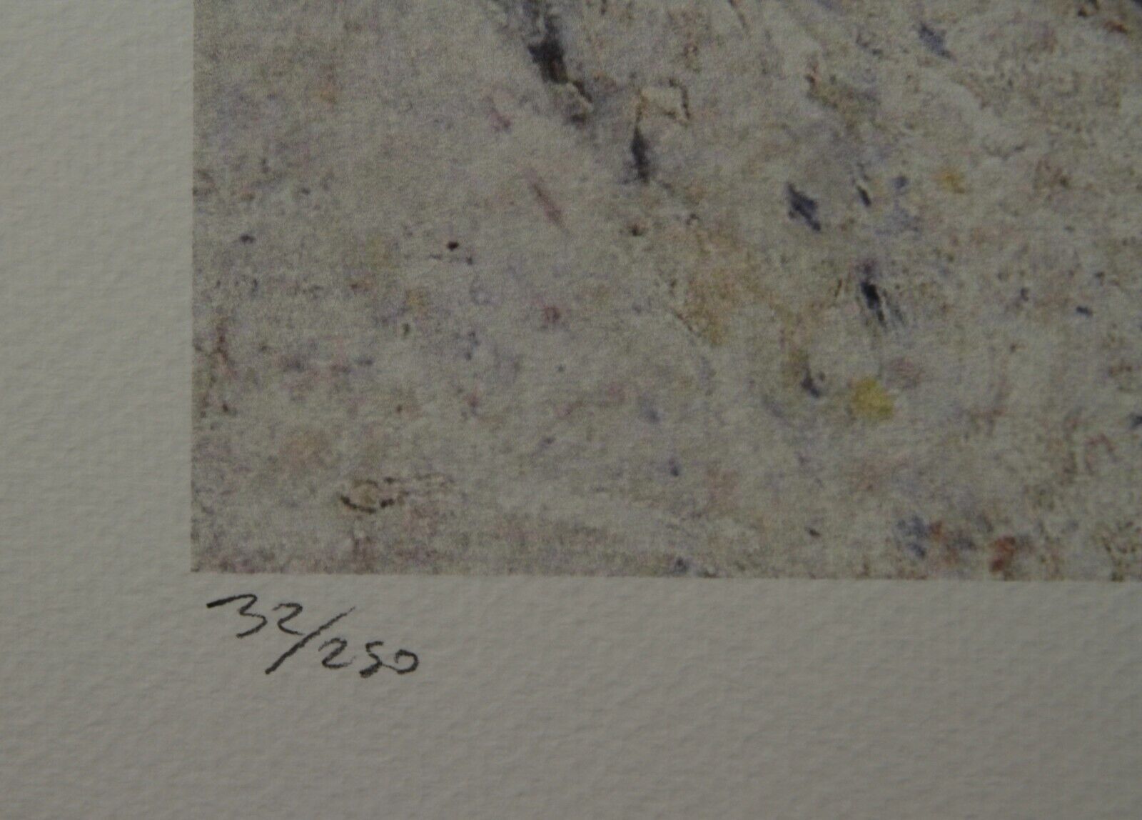 Lithographie Die Elster Geprägter Stempel von S.P.A.D.E.M. Paris Das Blatt ist signiert und mit der Hand nummeriert und im Papier gestempelt Limitierte Auflage von 250 Stück Jedes Stück ist einzeln nummeriert 32 250 Gesamtgröße : 50 cm x 70 cm Nach dem Original von Claude Monet Das Blatt wird flach