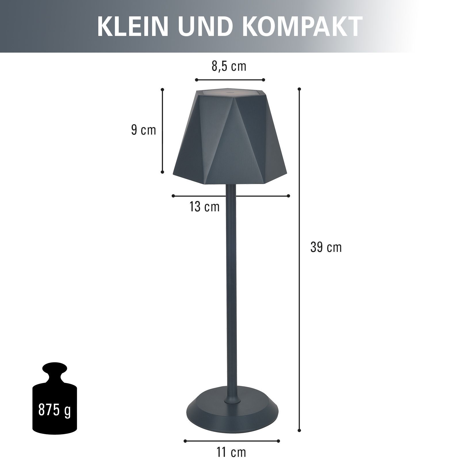 • LED Tischleuchte Akku, 26 cm, Touchschalter