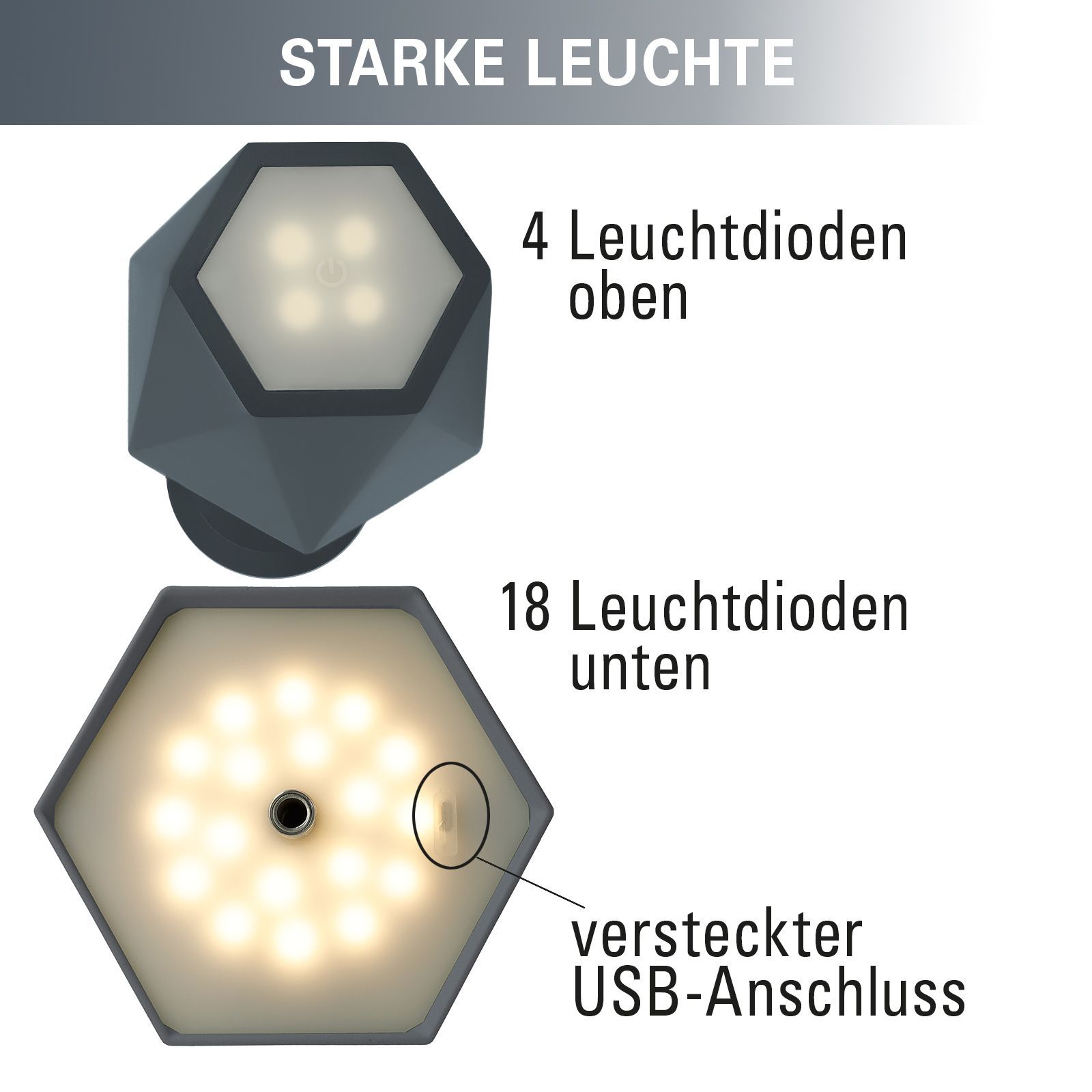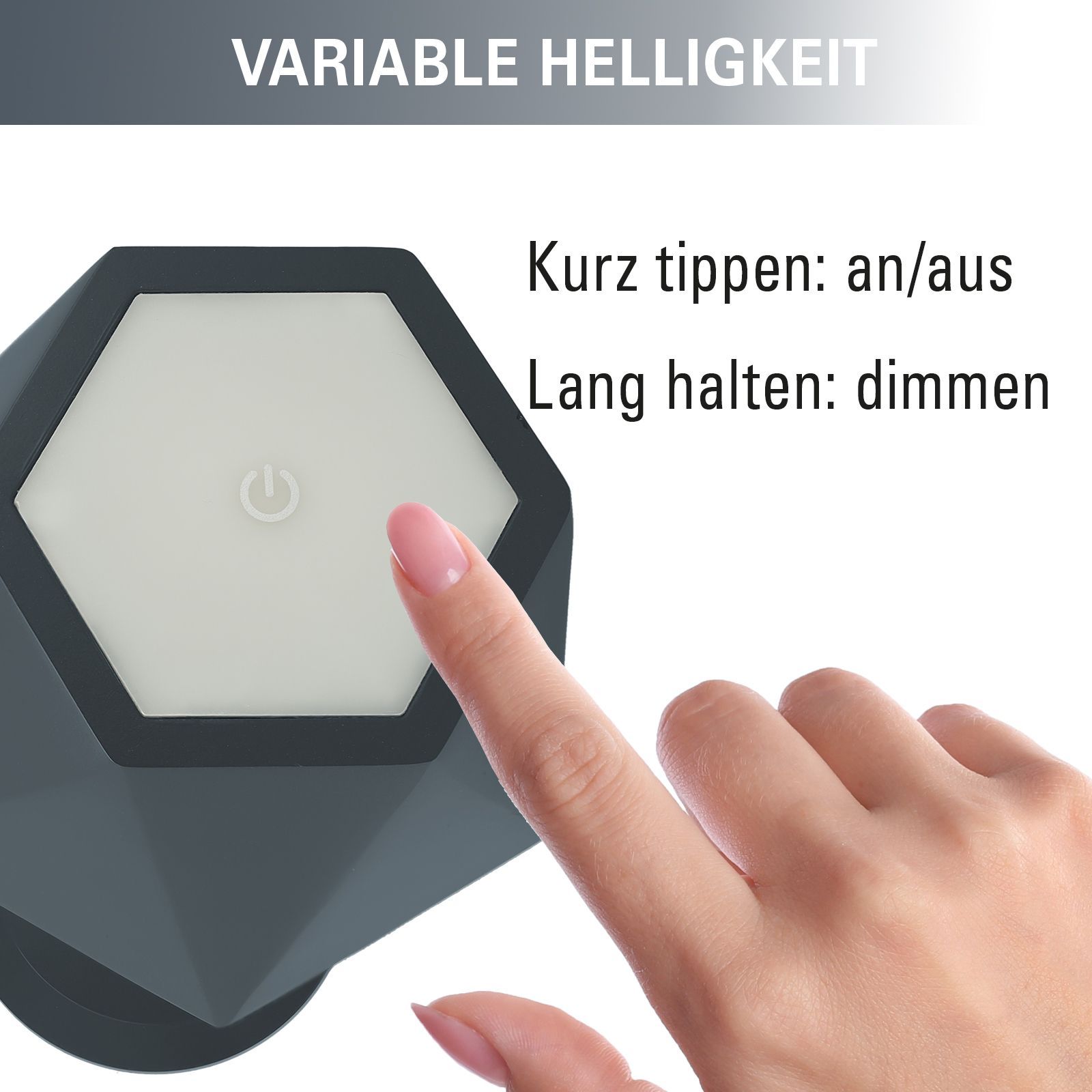 Clauss Tischlampe LED Grau, Akku Tischleuchte aus Metall mit Touch Dimmer, USB