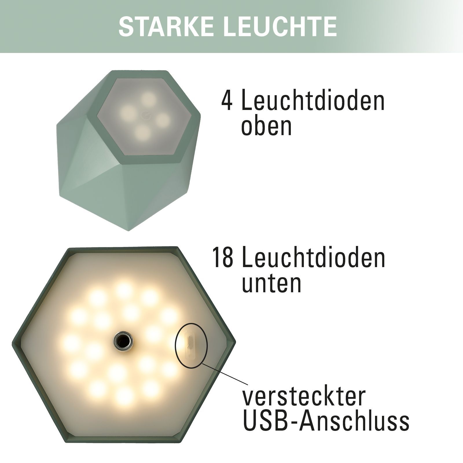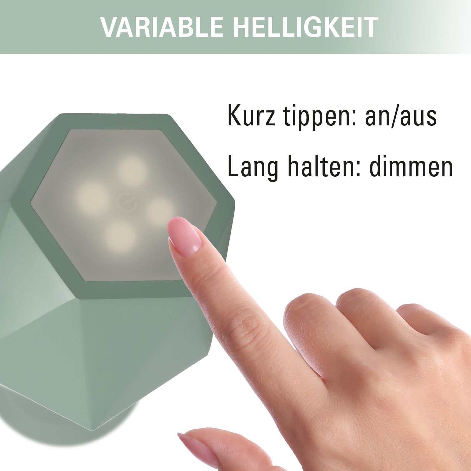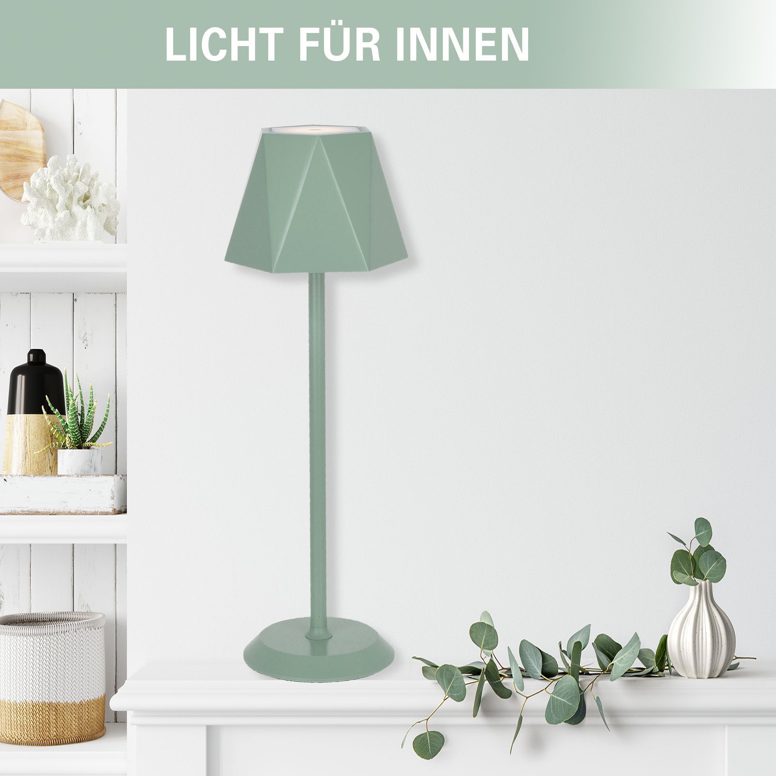 Clauss Tischlampe LED Mint, Akku Tischleuchte aus Metall mit Touch Dimmer, USB