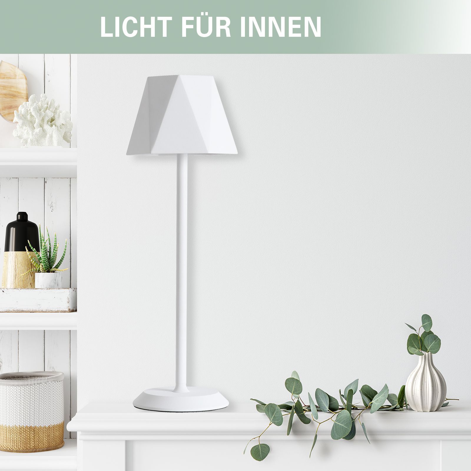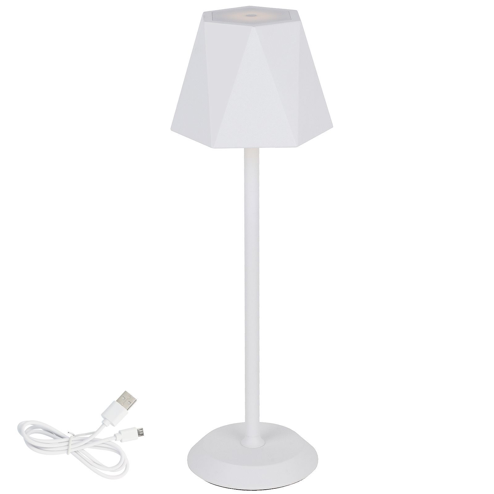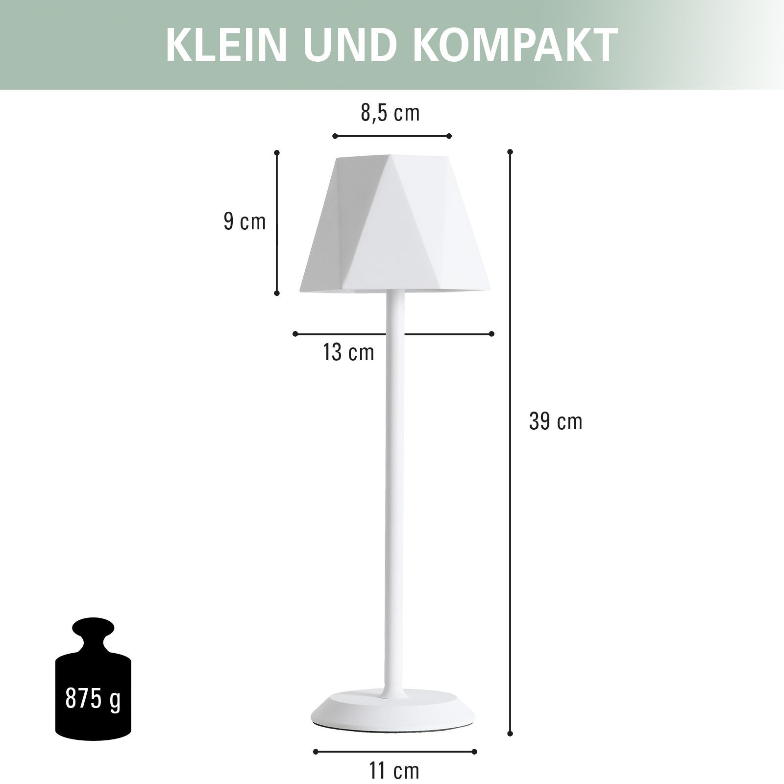 Clauss Tischlampe LED Weiß, Akku Tischleuchte aus Metall mit Touch Dimmer, USB