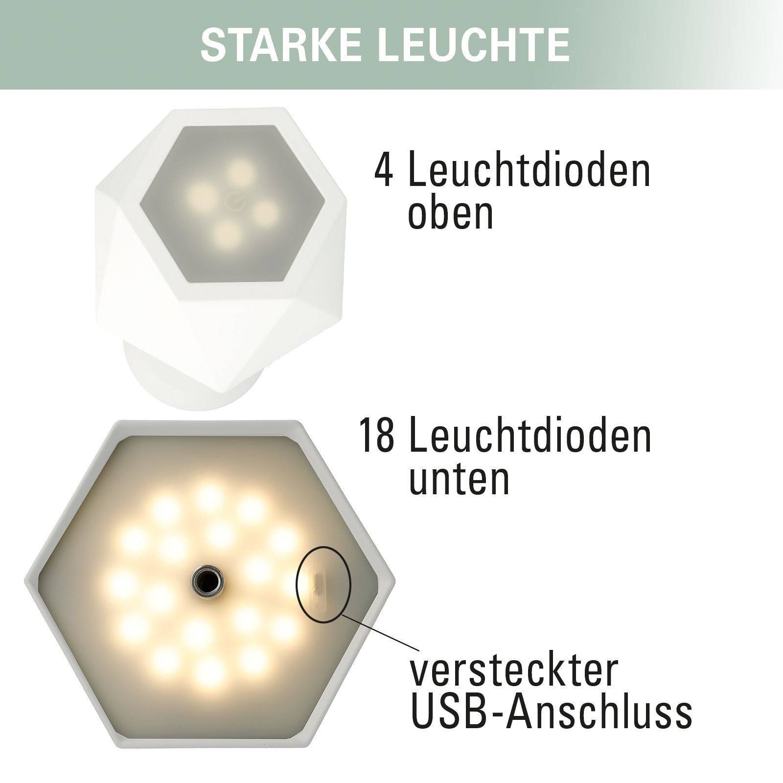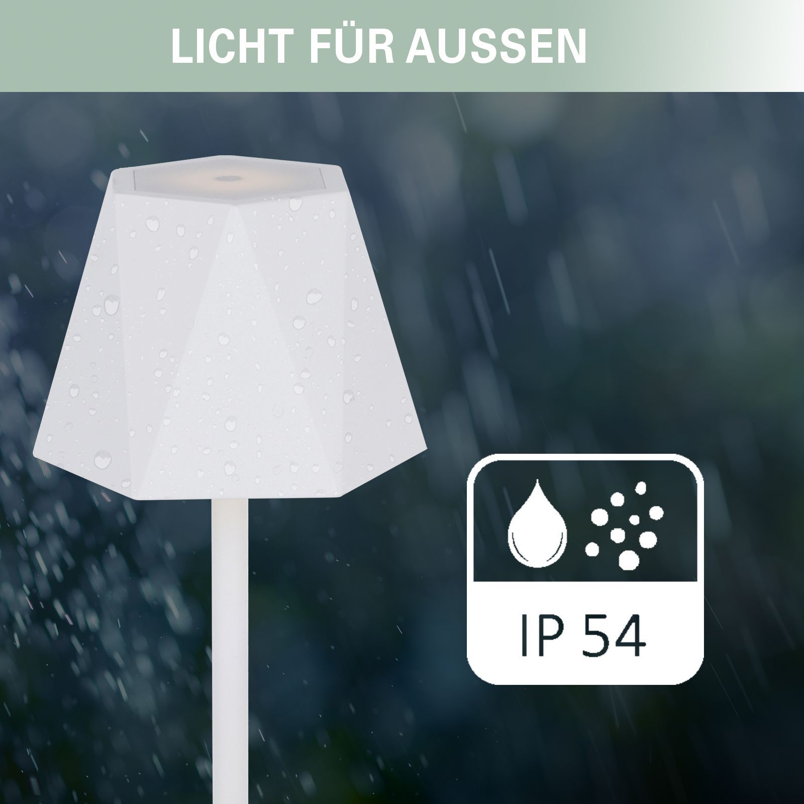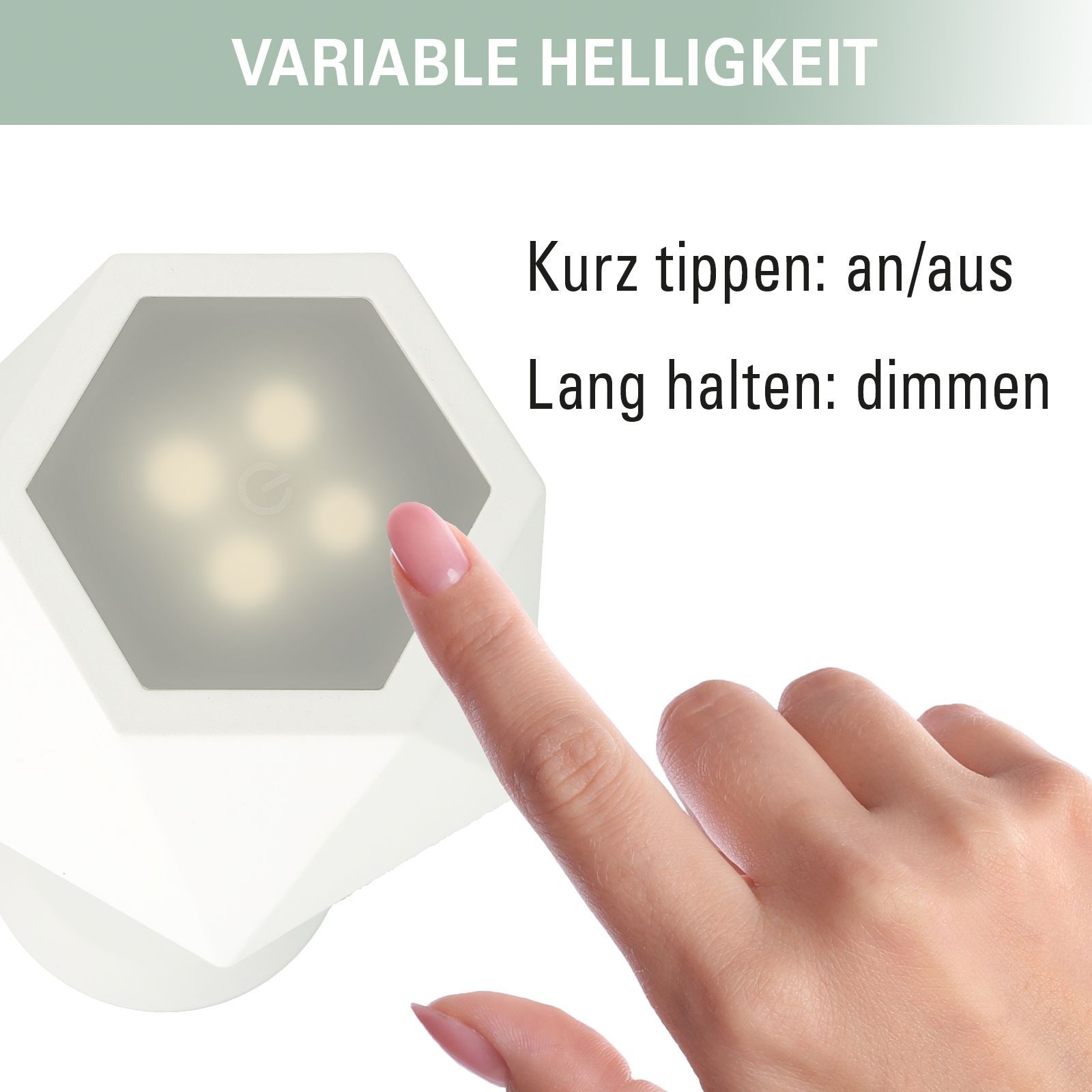 Clauss Tischlampe LED Weiß, Akku Tischleuchte aus Metall mit Touch Dimmer, USB