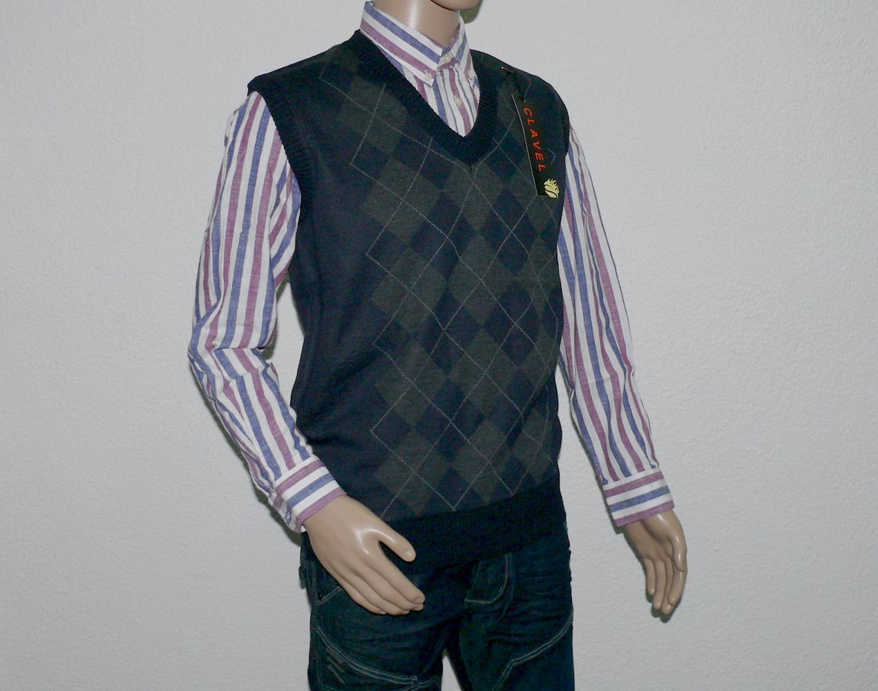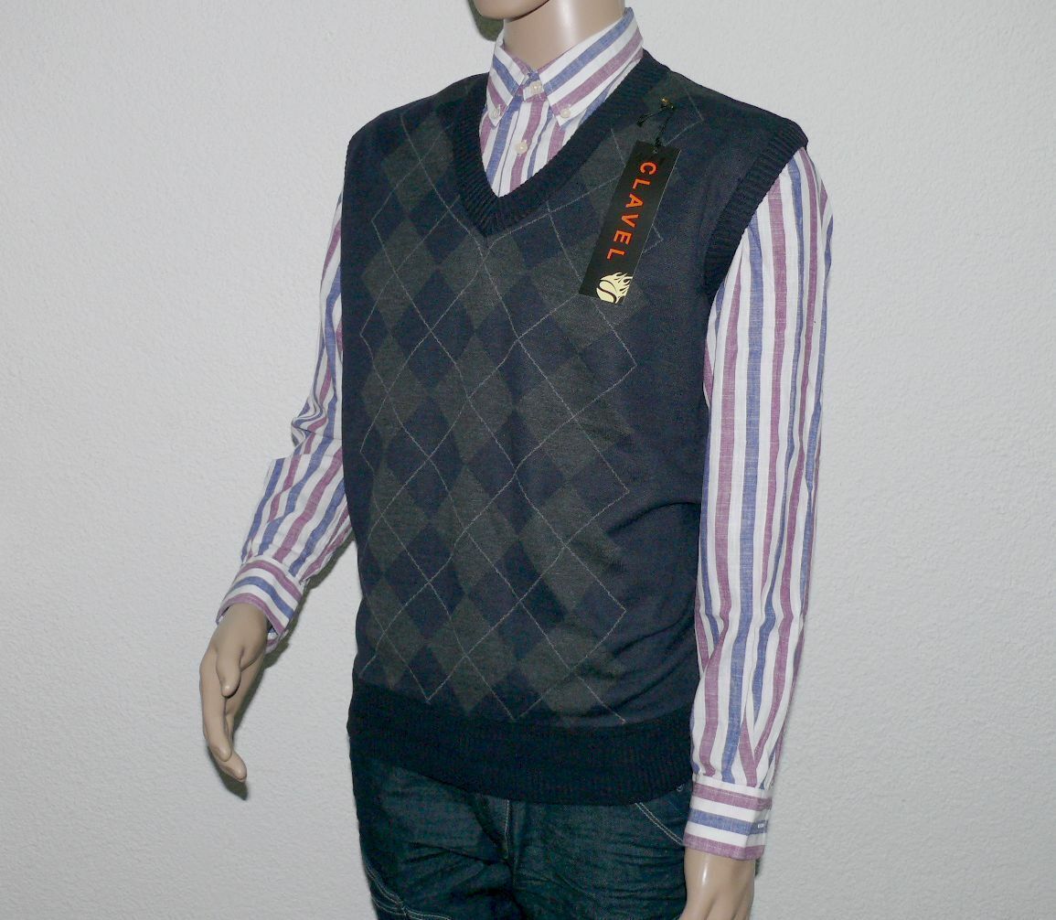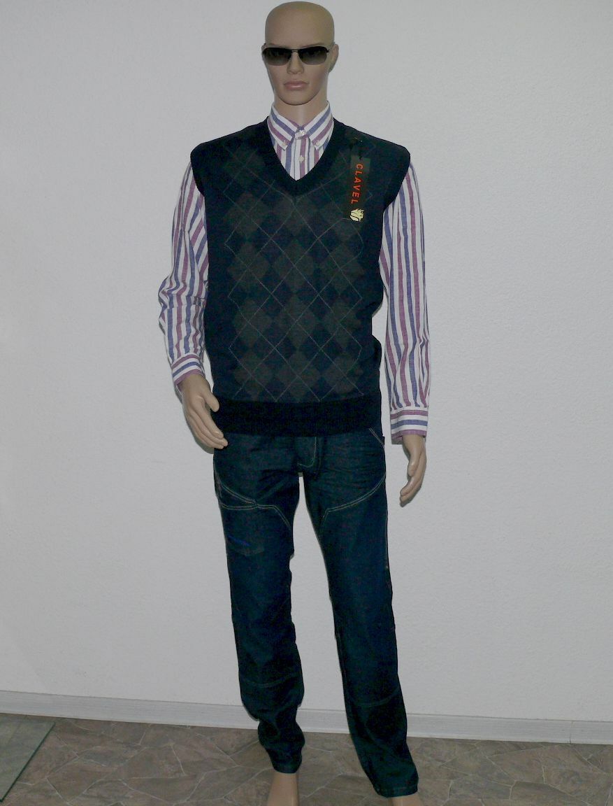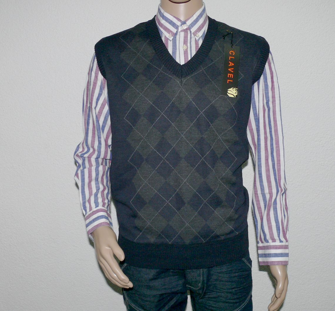 Clavel 9951 Strick Business Pullover Jacke Weste V-Ausschnitt Armellose XL Navy