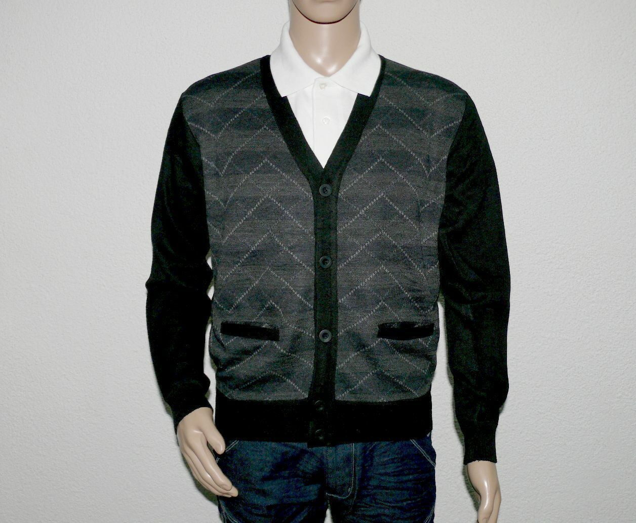 Clavel M9912 Strick Business Pullover Jacke Pulli V-Ausschnitt Langarm M Schwarz