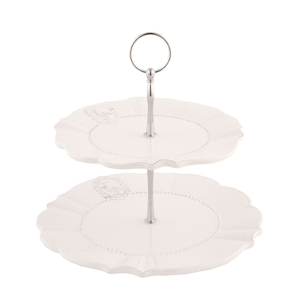 Clayre & Eef Clayre & Eef 2-Schicht-Etagere 23 cm Beige Keramik (Gr. Ø 25x23 cm)