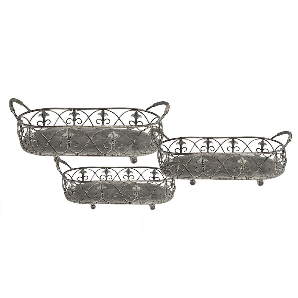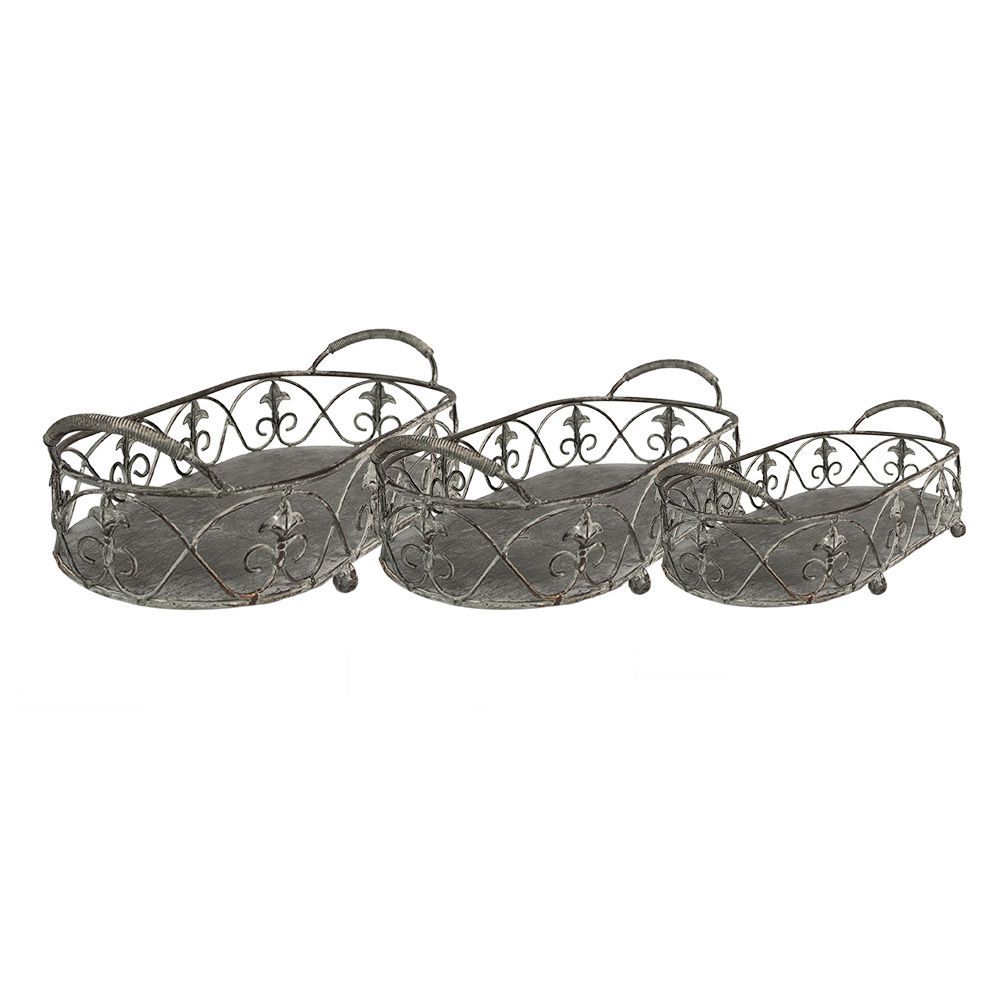 Clayre & Eef Clayre & Eef Aufbewahrungskorb 3er Set Grau Grün Eisen