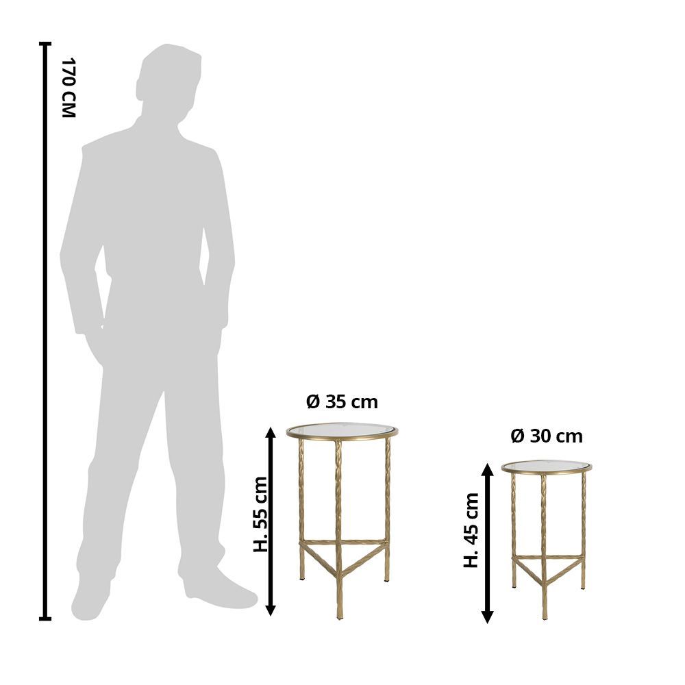 Clayre & Eef Clayre & Eef Beistelltisch 2er Set Ø 35 Ø 30 cm Goldfarbig Eisen