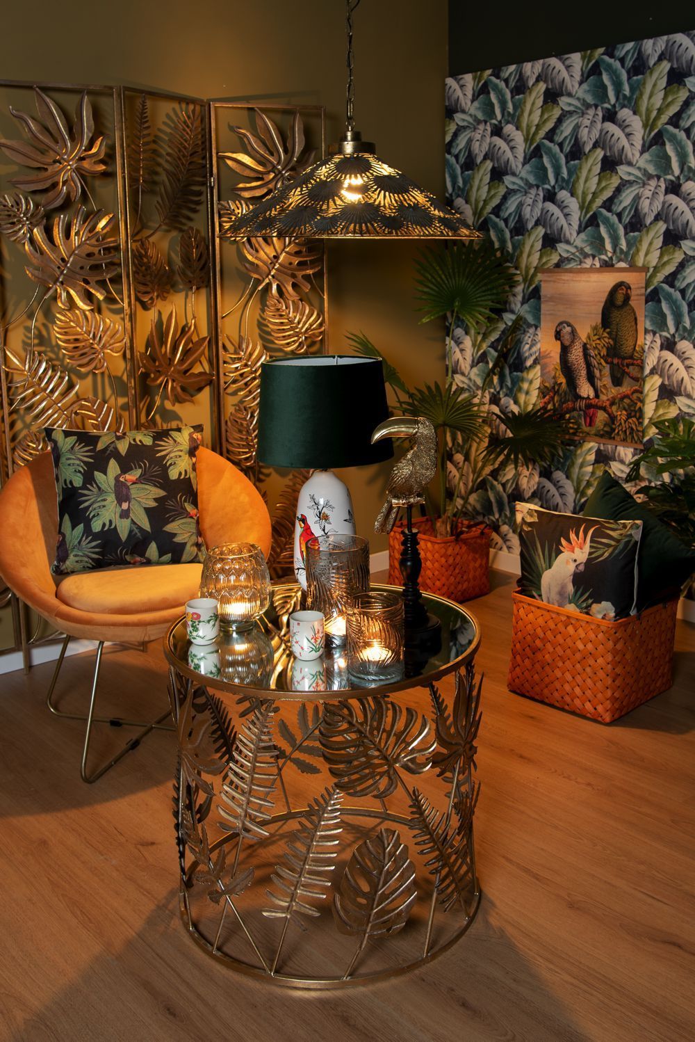 Clayre & Eef Clayre & Eef Beistelltisch Ø 61x56 cm Goldfarbig Metall Rund Blätter (Gr. Ø 61x56 cm)