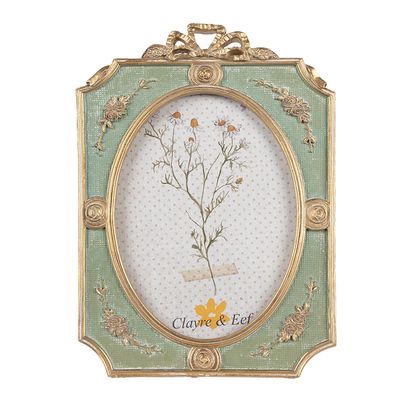 • Clayre & Eef Bilderrahmen 10x15 cm Grün Goldfarbig Polyresin