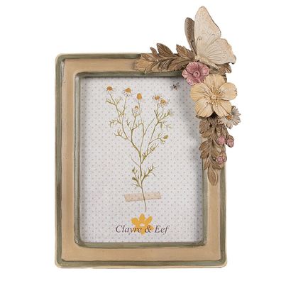 • Clayre & Eef Bilderrahmen 13x18 cm Beige Braun Eisen Blumen