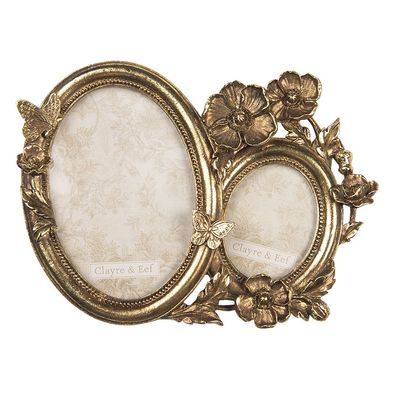 • Clayre & Eef Bilderrahmen 15x18 cm Goldfarbig Polyresin Blumen