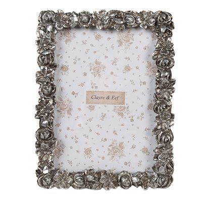 • Clayre & Eef Bilderrahmen 10x15 cm Silberfarbig Polyresin Blumen