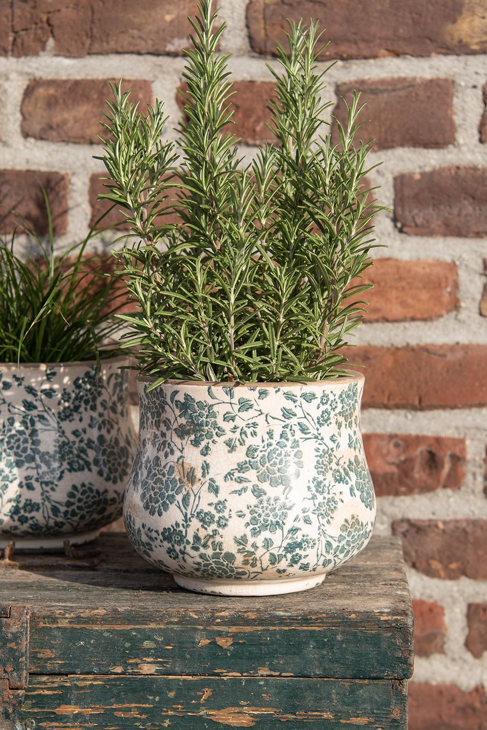 Clayre & Eef Clayre & Eef Blumentopf Ø 18x15 cm Beige Grün Keramik Blumen (Gr. Ø 18x15 cm)