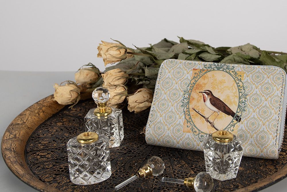 Clayre & Eef Brieftasche 10x15 cm Grün Polyester Vogel (Gr. 10x15 cm)