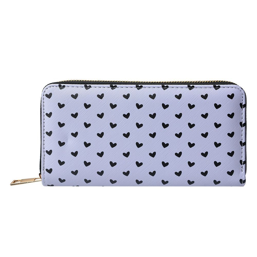 Clayre & Eef Brieftasche 10x19 cm Weiß Schwarz Polyester Herzen (Gr. 10x19 cm)