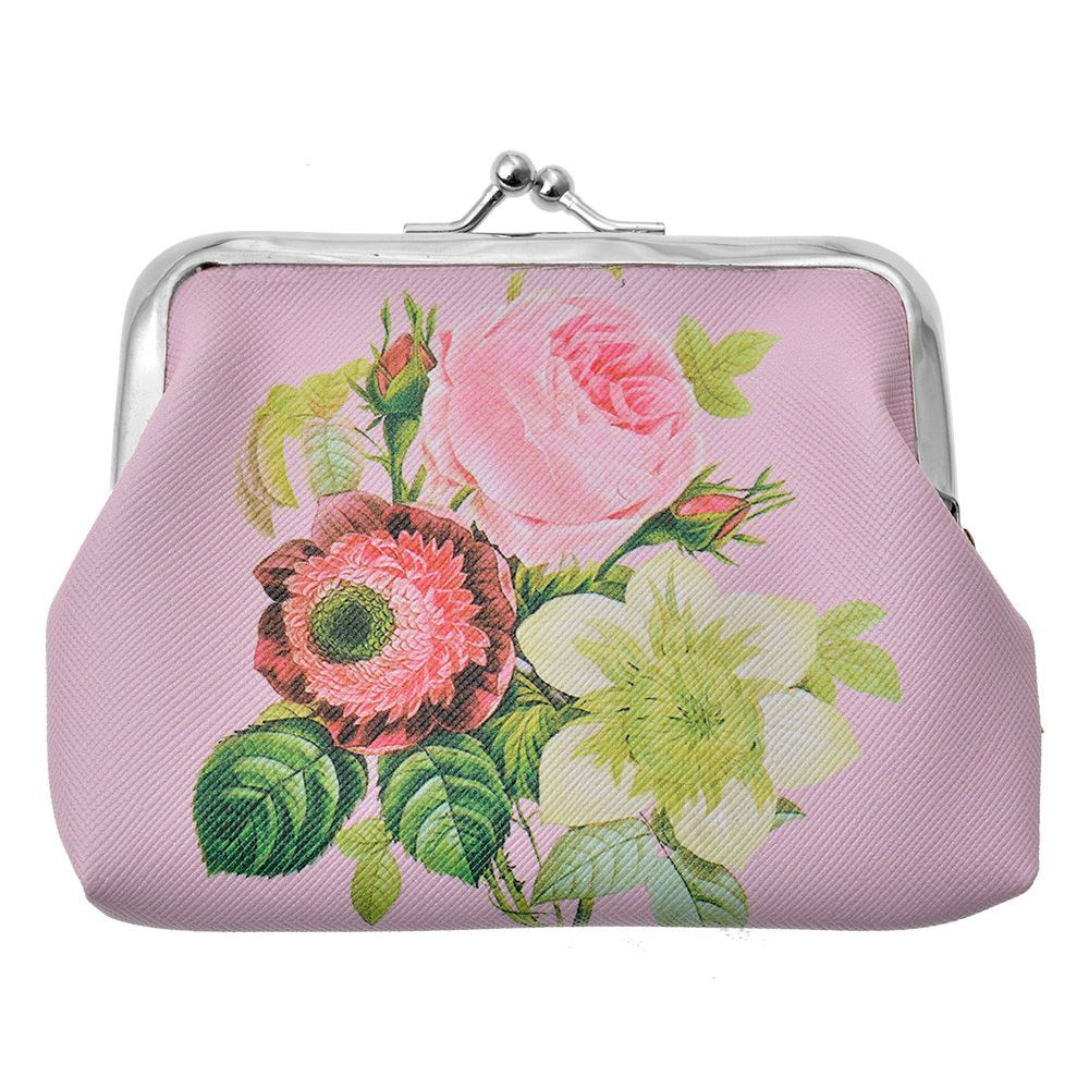 Clayre & Eef Brieftasche 8x12 cm Rosa Polyester Blumen (Gr. 8x12 cm)