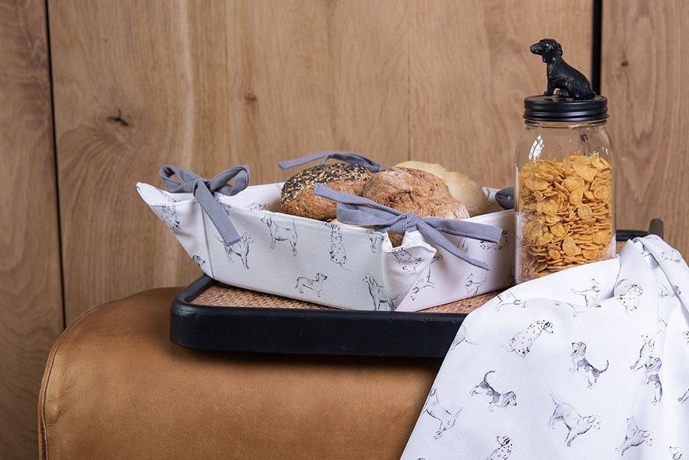 Clayre & Eef Clayre & Eef Brotkorb 35x35x8 cm Weiß Grau Baumwolle Dackel (Gr. 35x35x8 cm)