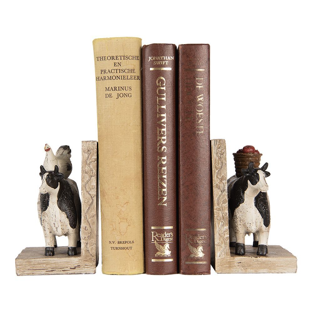 Clayre & Eef Clayre & Eef Buchstützen 2er-Set Kuh 17x10x14 cm Braun Kunststoff