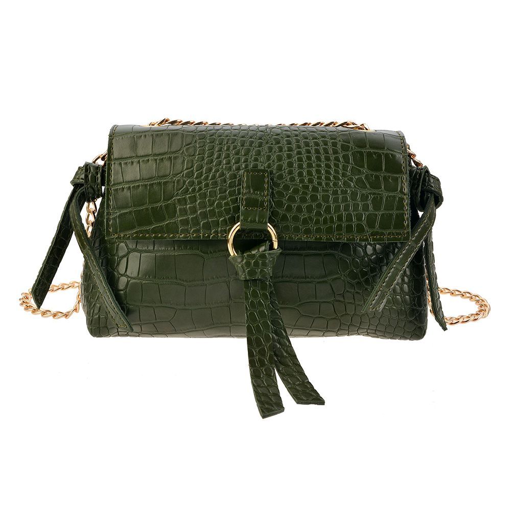 Clayre & Eef Damenhandtasche 23x8x13 cm Grün Kunststoff Schlangenleder