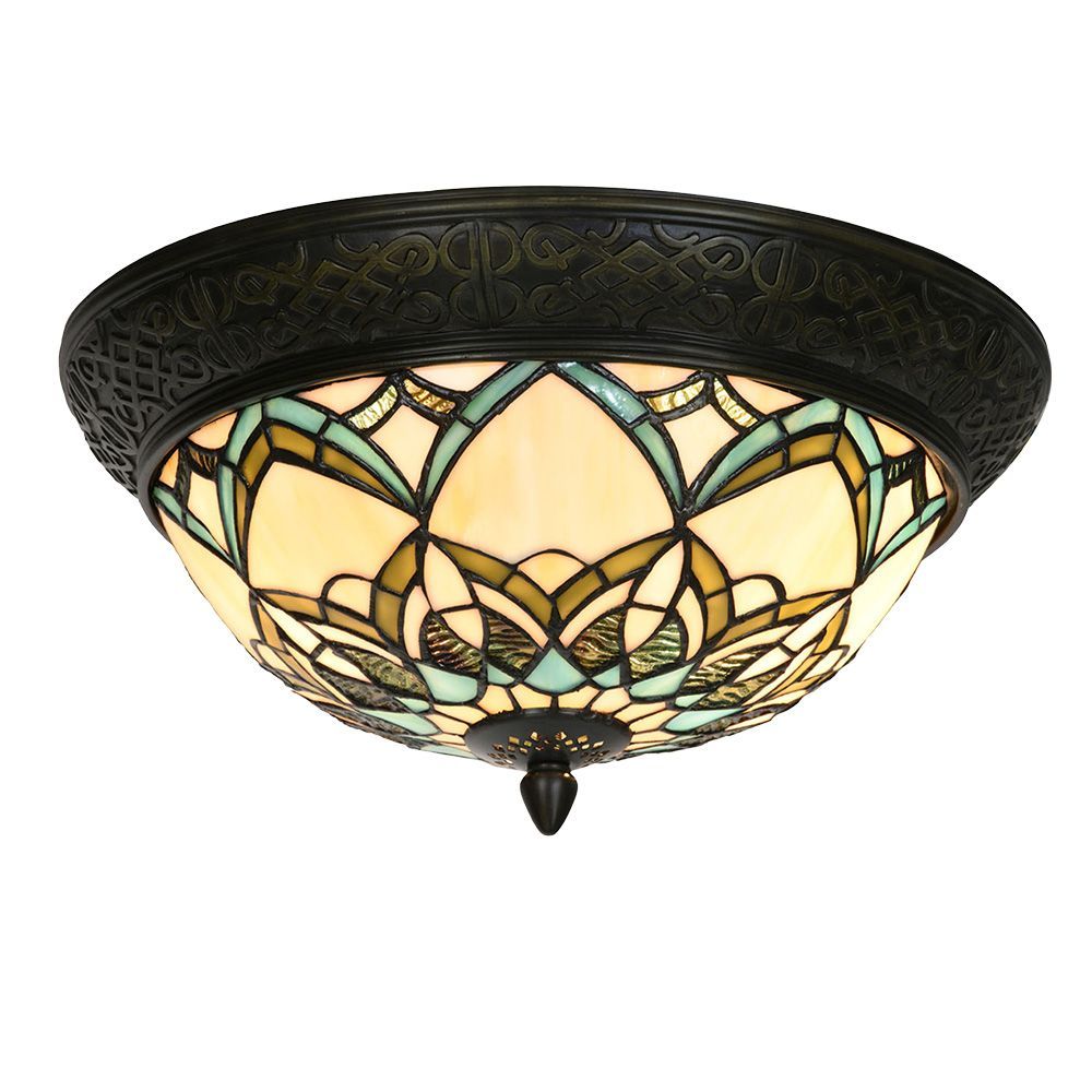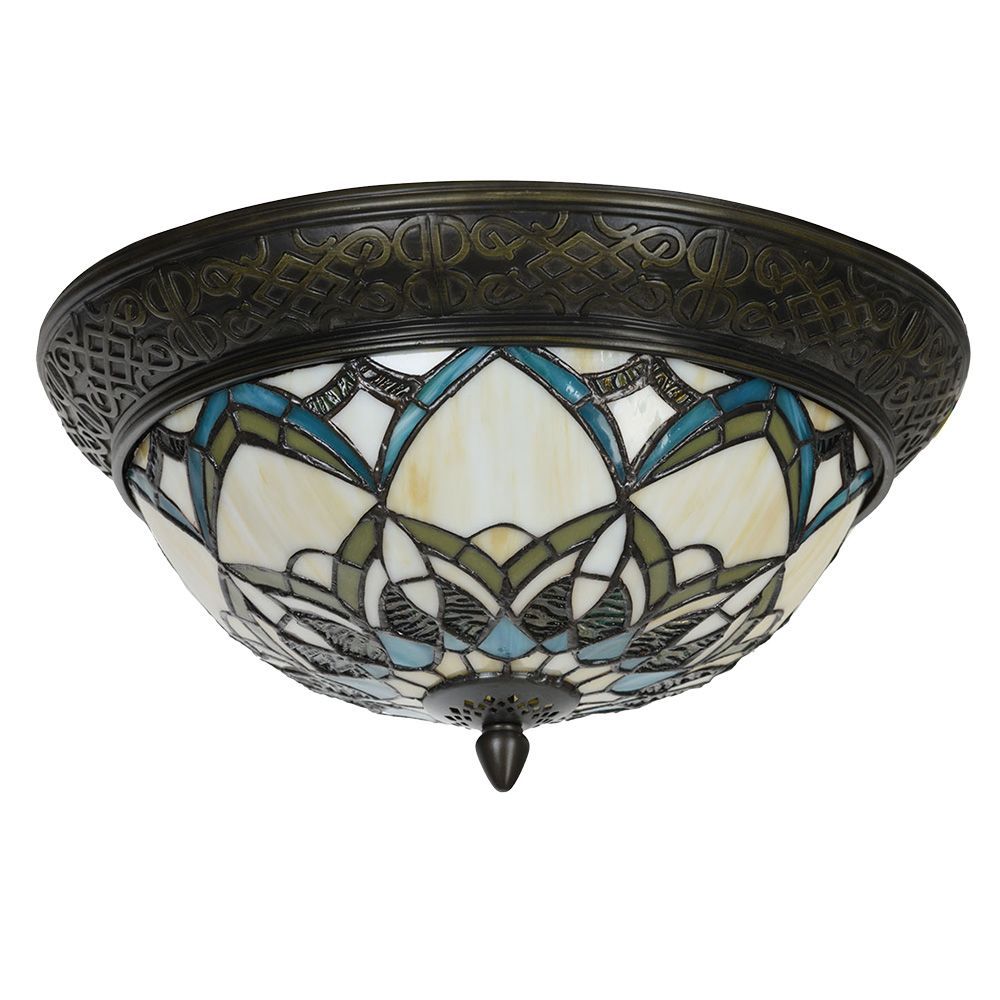 Clayre & Eef Deckenlampe Tiffany Ø 37x19 cm Beige Blau Glas