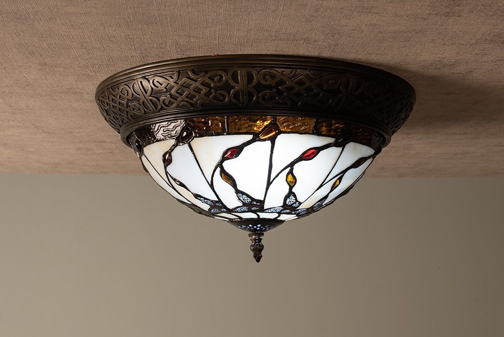 Clayre & Eef Deckenlampe Tiffany Ø 38x19 cm Beige Braun Glas Schmetterling