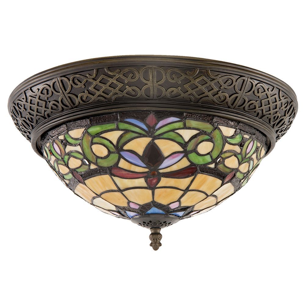Clayre & Eef Deckenlampe Tiffany Ø 38x20 cm Gelb Glas