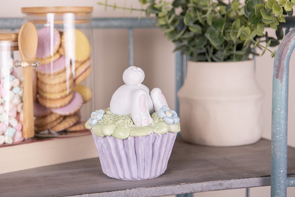 Clayre & Eef Clayre & Eef Dekorationsfigur Kaninchen Ø 11x12 cm Weiß Violett Kunststoff