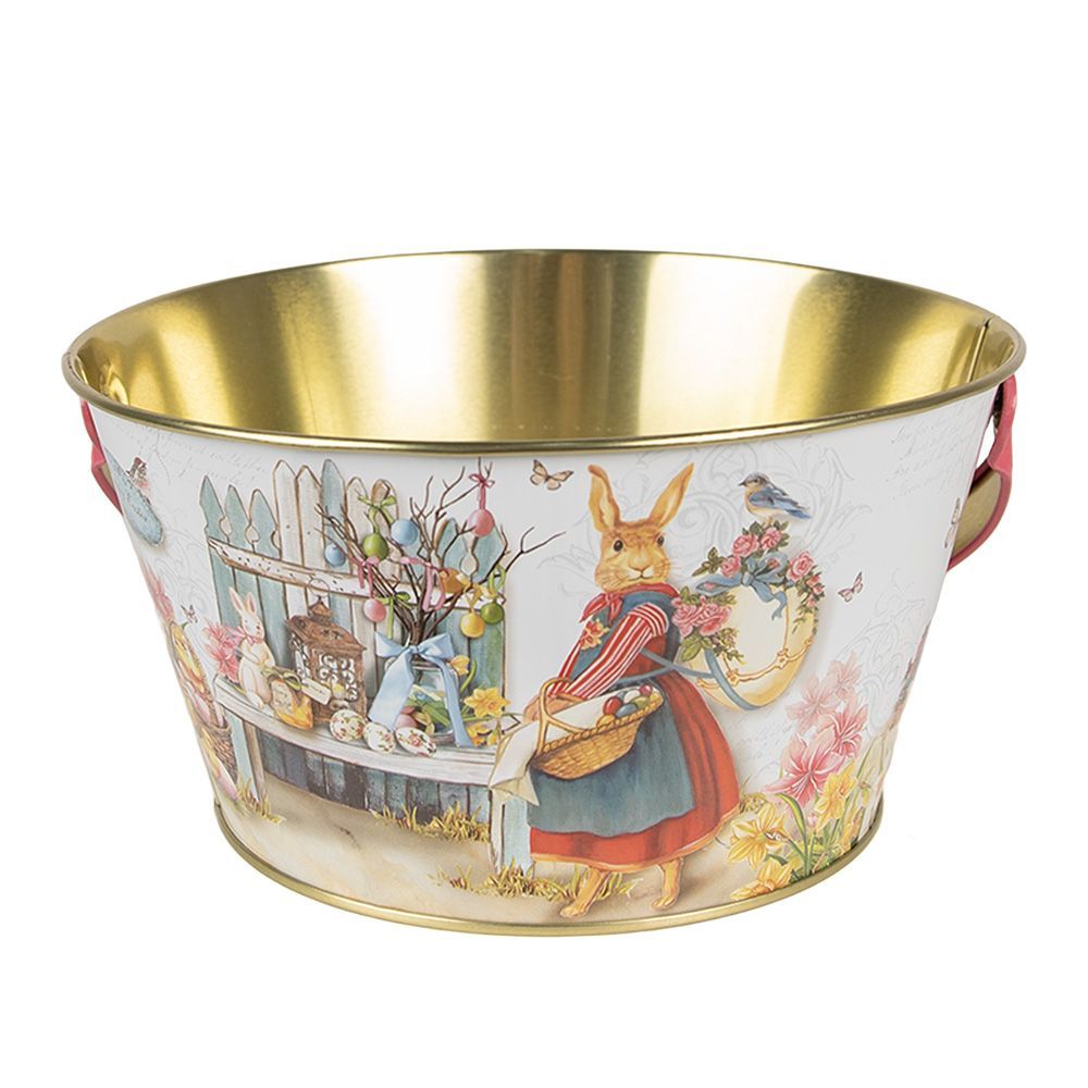 Clayre & Eef Clayre & Eef Dekorationskorb Ø 19x10 cm Weiß Aluminium Kaninchen