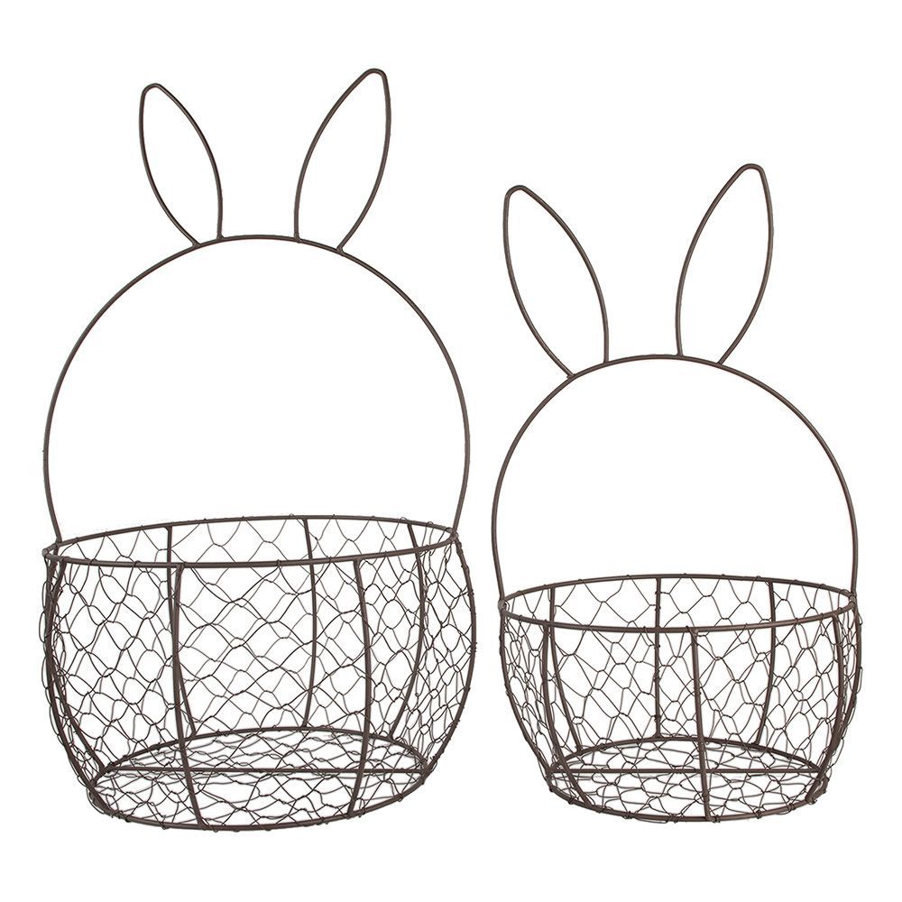 Clayre & Eef Clayre & Eef Dekorationskorb 2er Set Ø 33x55 / Ø 27x45 cm Braun Metall Kaninchen