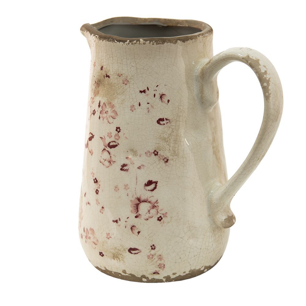 Clayre & Eef Clayre & Eef Dekorative Kanne 1150 ml Rosa Beige Keramik Blumen