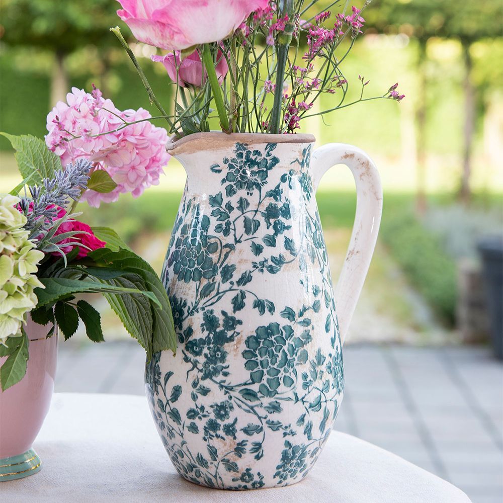 Clayre & Eef Clayre & Eef Dekorative Kanne 1300 ml Grün Keramik Blätter (Gr. 16x12x22 cm)