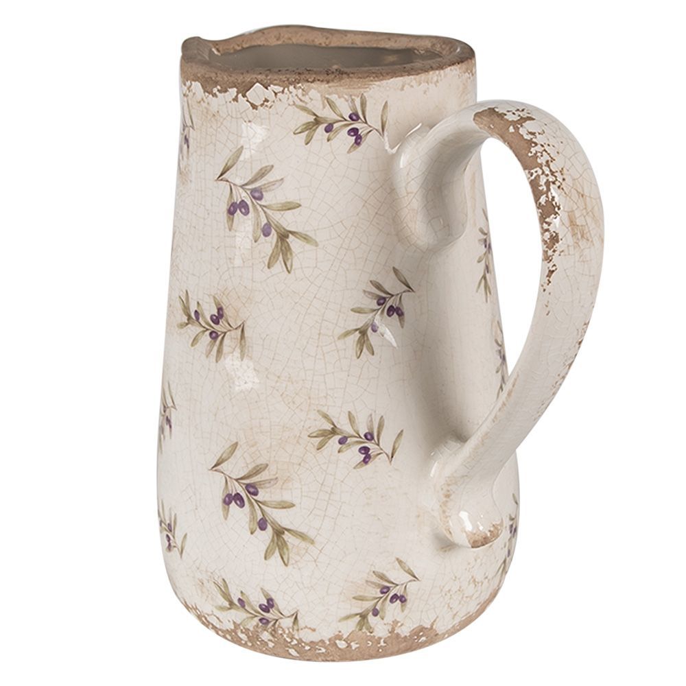 Clayre & Eef Clayre & Eef Dekorative Kanne 16x12x18 cm Beige Blau Keramik Oliven (Gr. 16x12x18 cm)