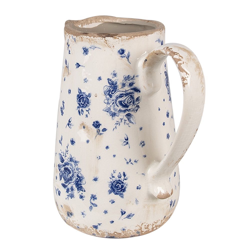 Clayre & Eef Clayre & Eef Dekorative Kanne 16x12x18 cm Beige Blau Keramik Rosen (Gr. 16x12x18 cm)