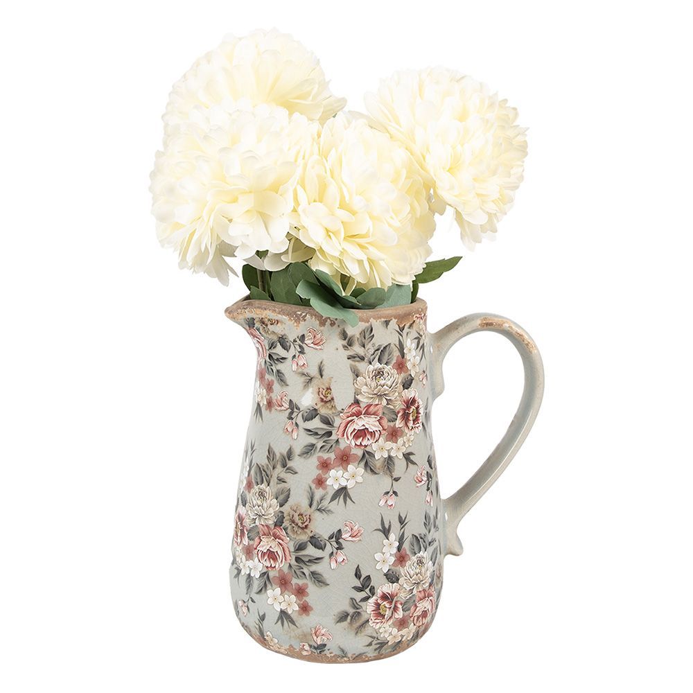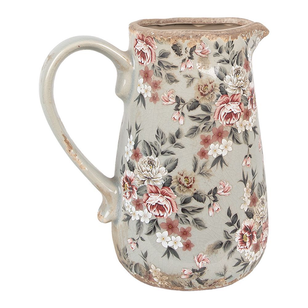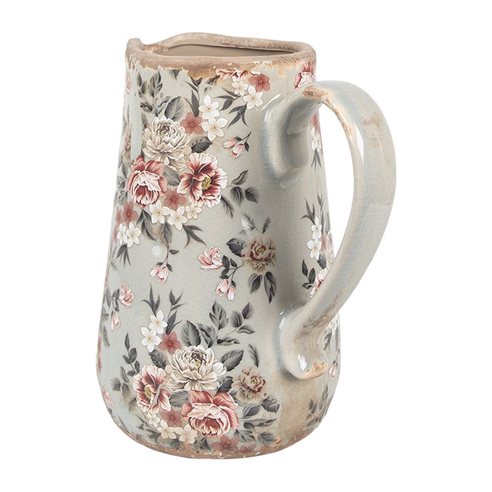 Clayre & Eef Clayre & Eef Dekorative Kanne 16x12x18 cm Grau Keramik Blumen (Gr. 16x12x18 cm)