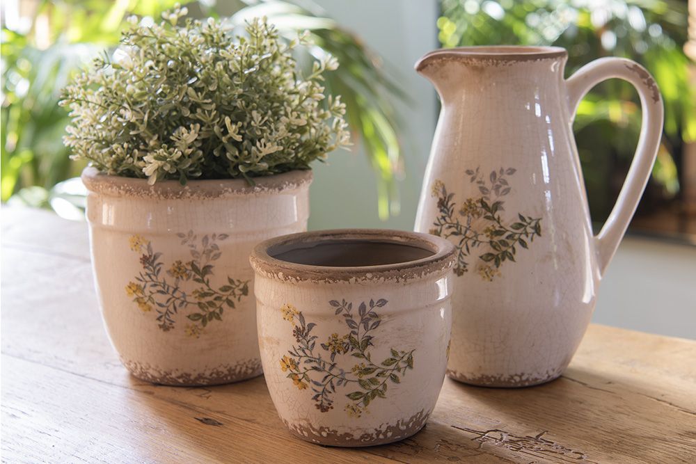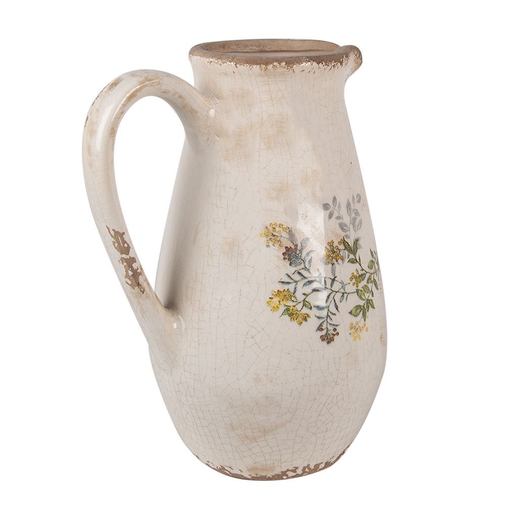 Clayre & Eef Clayre & Eef Dekorative Kanne 17x13x22 cm Beige Gelb Keramik Blumen (Gr. 17x13x22 cm)