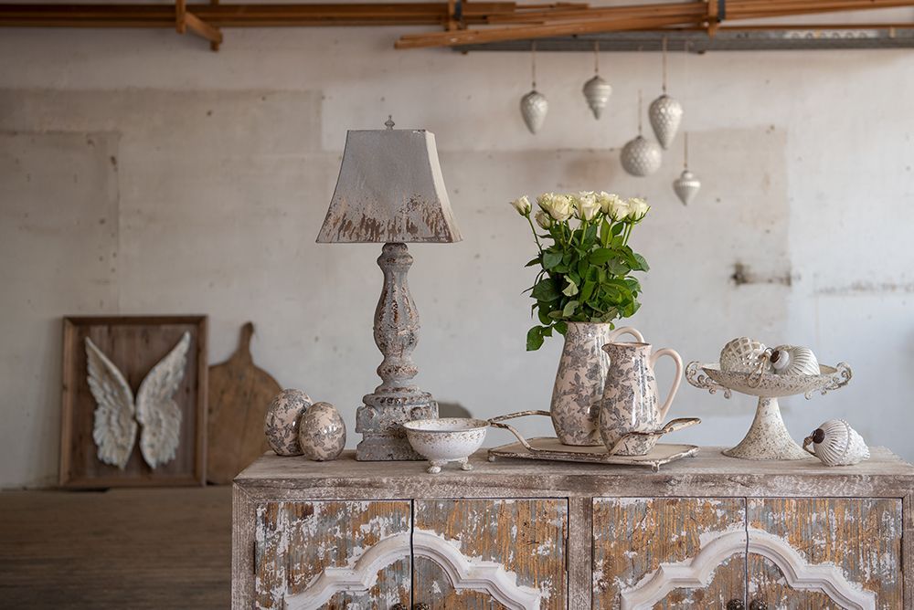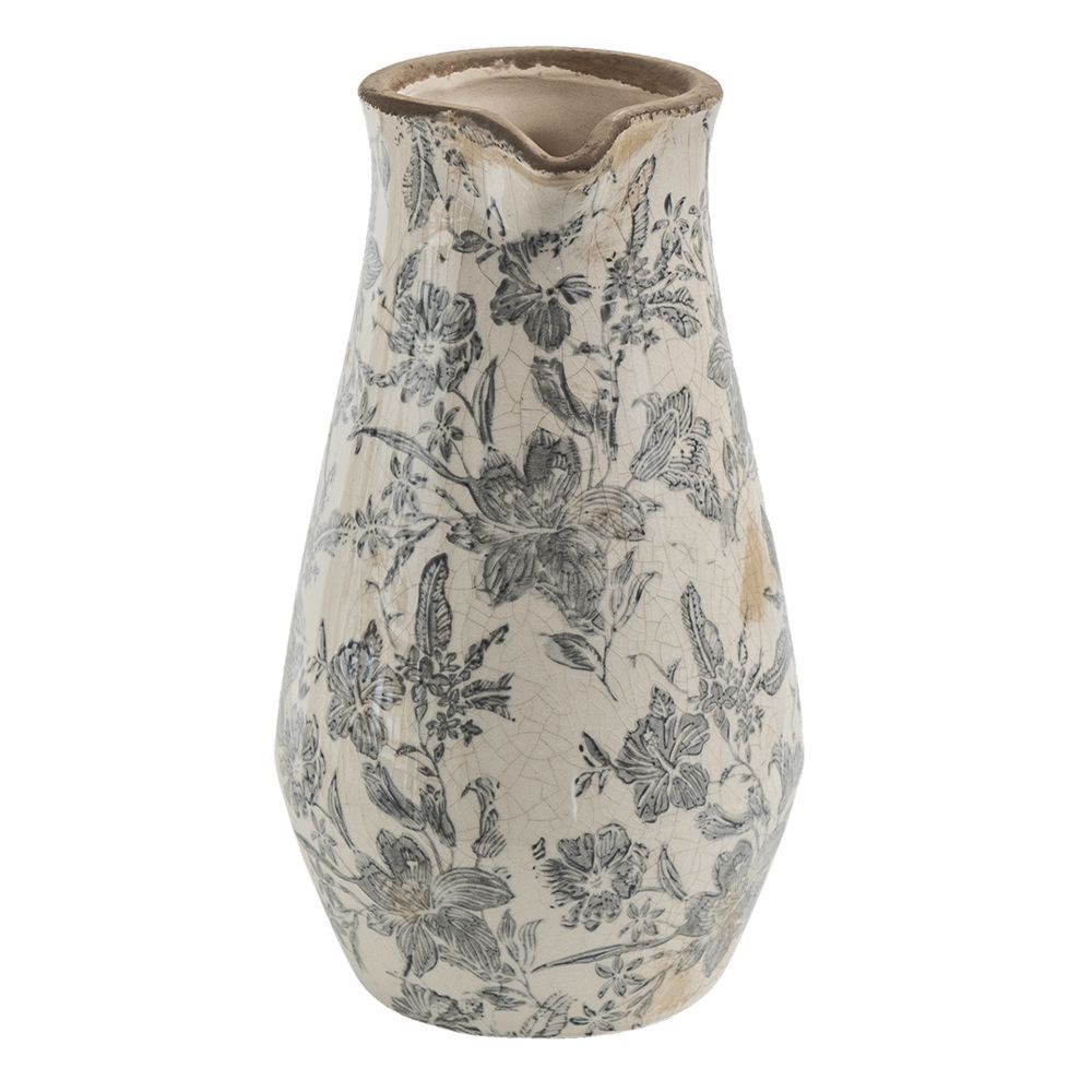 Clayre & Eef Clayre & Eef Dekorative Kanne 20x14x25 cm Grau Beige Keramik Blumen (Gr. 20x14x25 cm)
