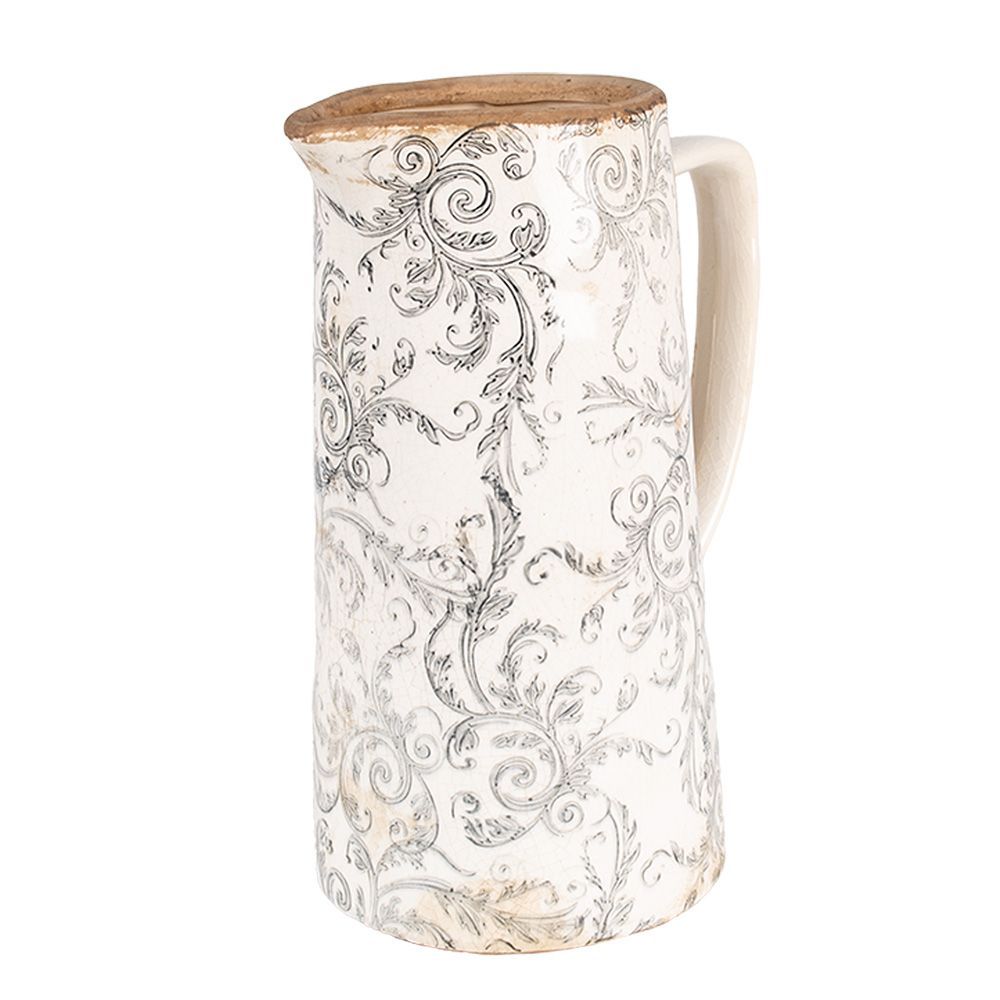 Clayre & Eef Clayre & Eef Dekorative Kanne 21x14x26 cm Beige Grau Keramik Blumen (Gr. 21x14x26 cm)