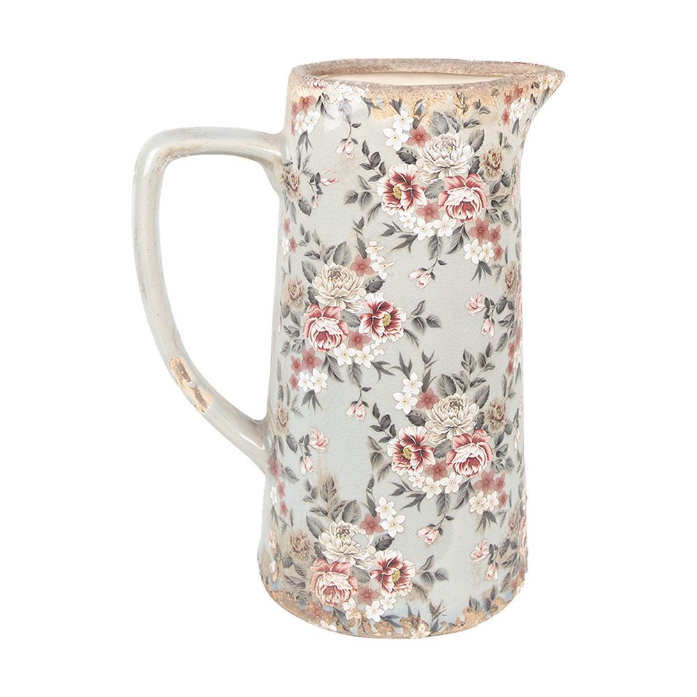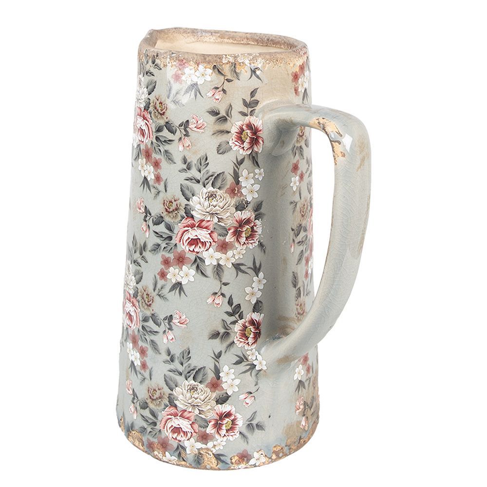 Clayre & Eef Clayre & Eef Dekorative Kanne 21x14x26 cm Grau Keramik Blumen (Gr. 21x14x26 cm)