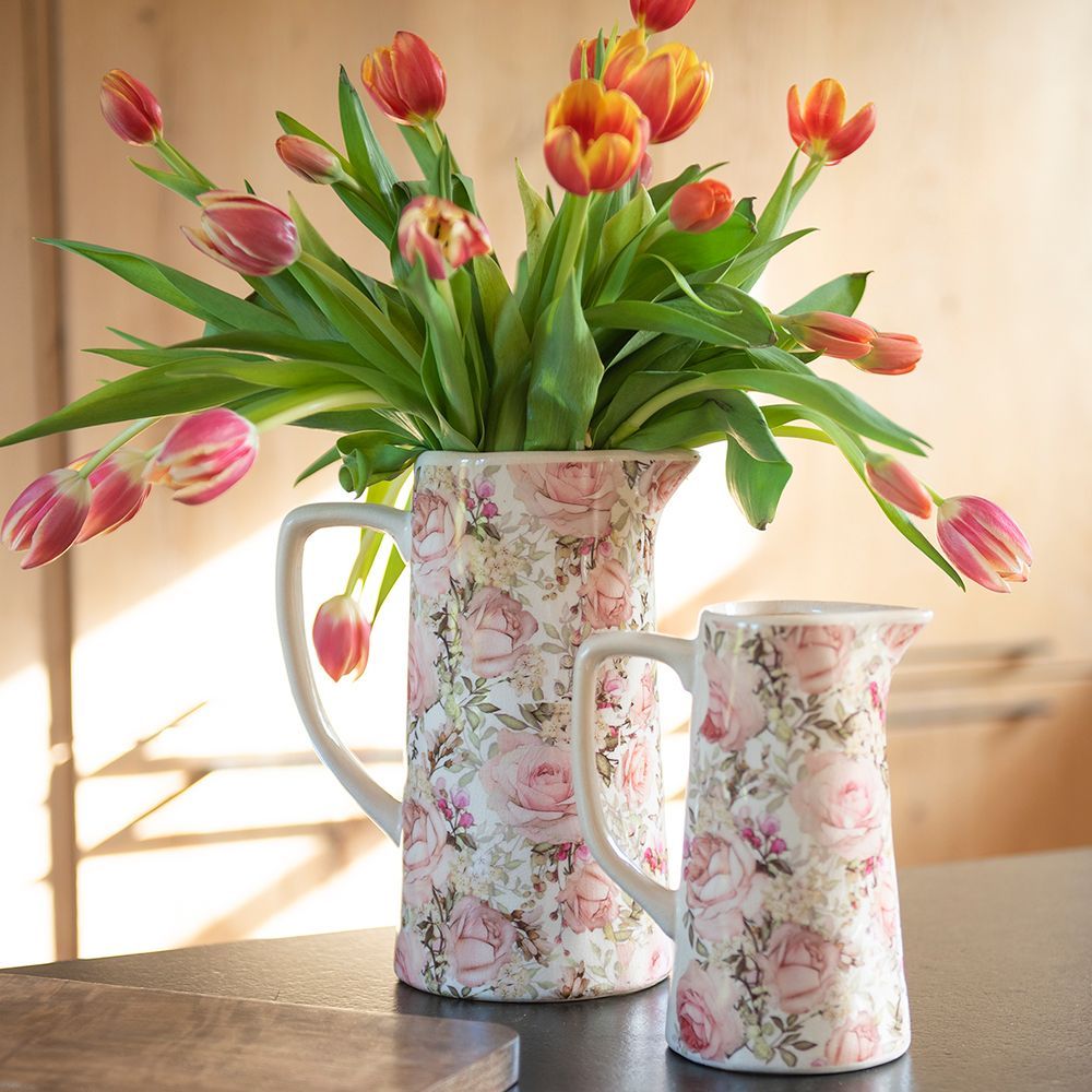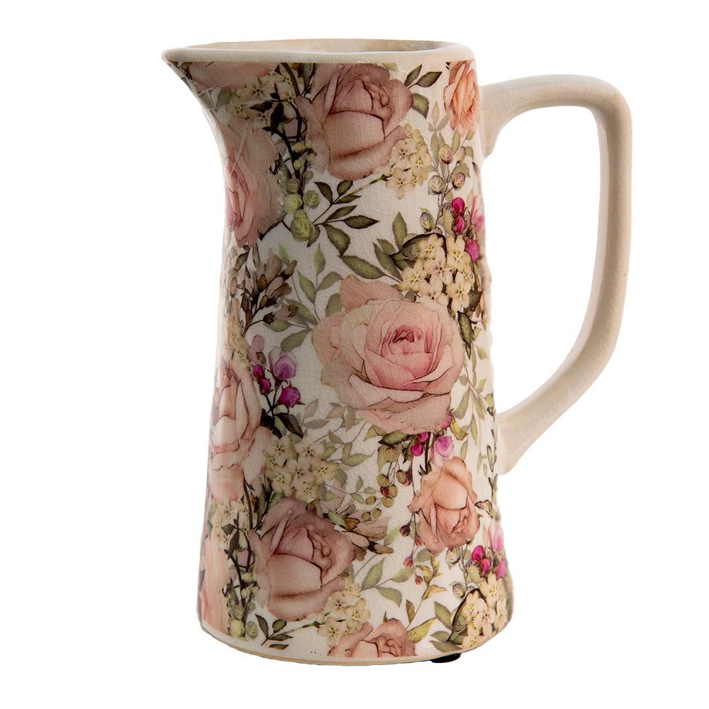 Clayre & Eef Clayre & Eef Dekorative Kanne 750 ml Rosa Keramik Blumen (Gr. 15x10x19 cm)